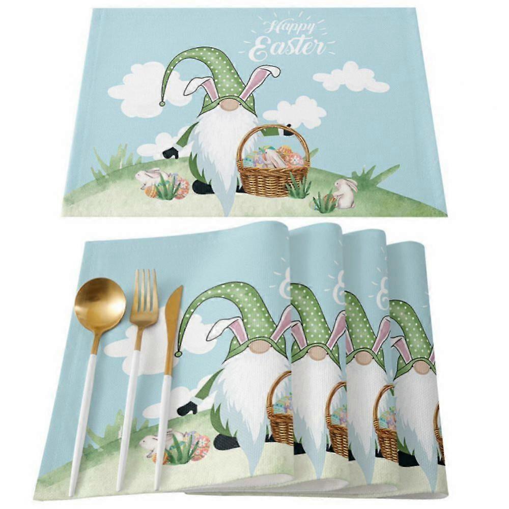 Easter Placemats Set of 4, Bunny Cotton Linen Table Mats, Non-Slip Washable Spring Decor, Plaid Leopard Print
