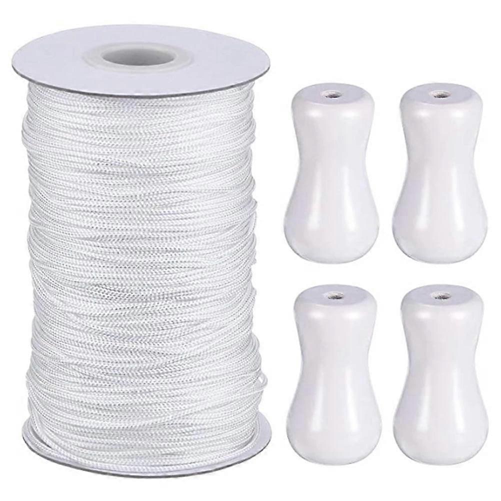 Senikei White Braided Blind Cord Set with Wood Tassels for DIY Shades & Rollers