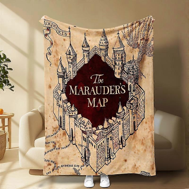 Magic Map Theme Flannel Blanket, Soft Warm Non-Irritating Fabric, Vintage Castle Pattern, Sofa Bed Camping Travel Use, All Seasons