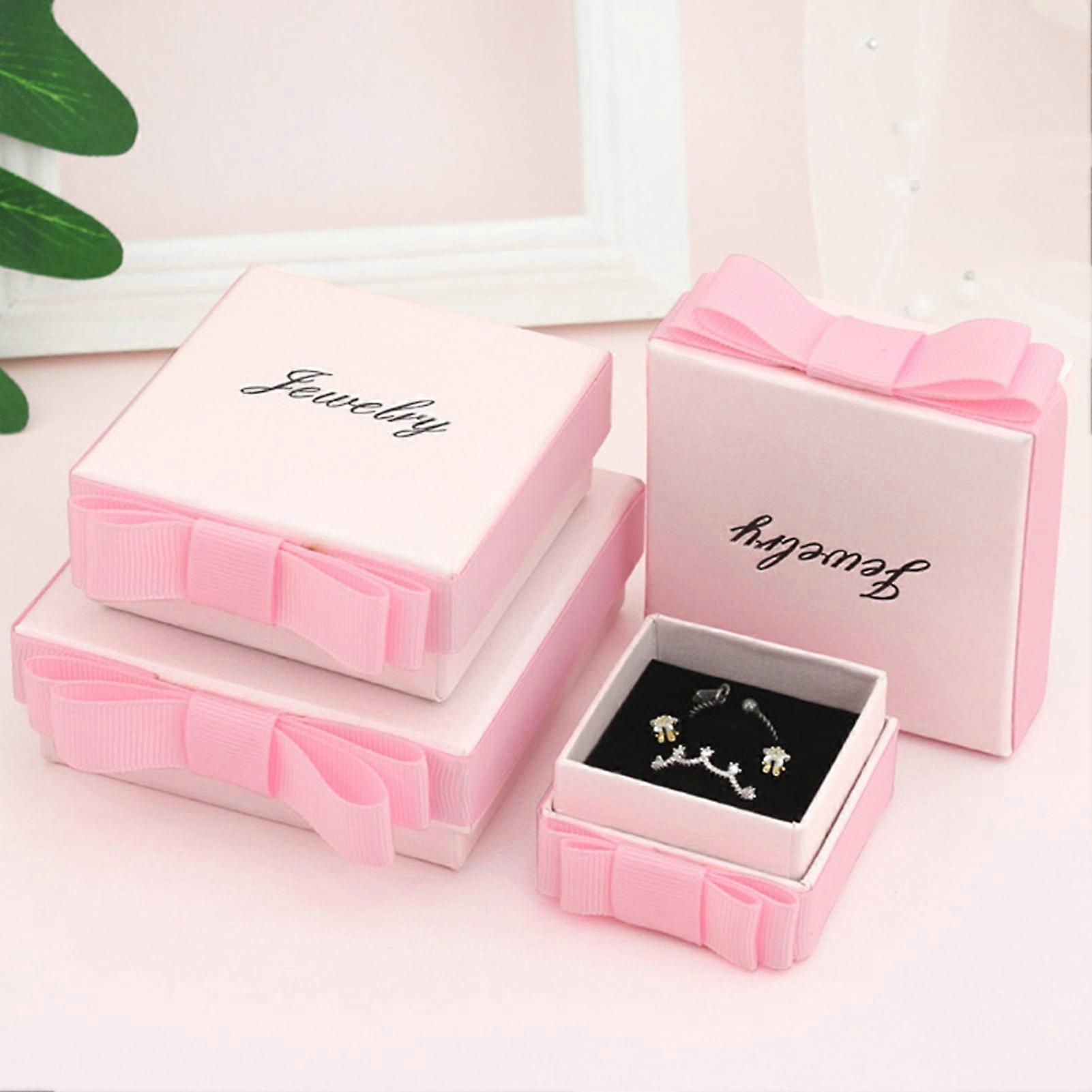 Pink Season Jewelry Box w/ Side Bowknot, Sponge Insert, Compartmentalized, Fine Texture - Portable Storage for Necklace, Ring, Earring & Bracelet