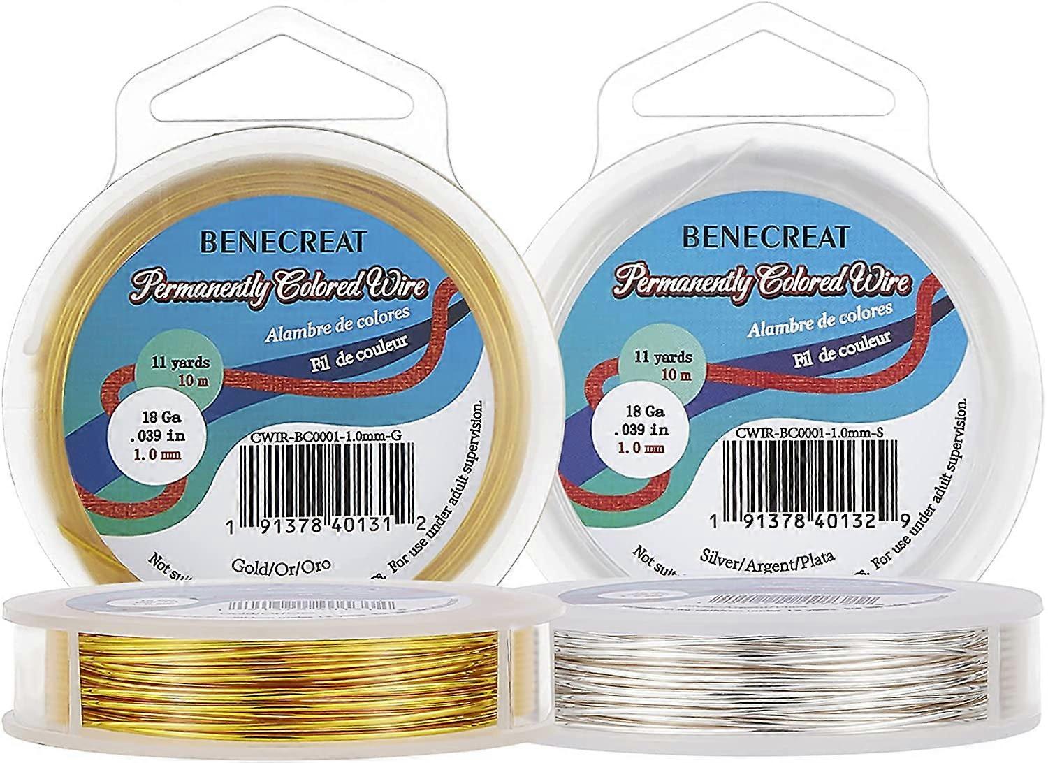 2 Rolls 18-Gauge Tarnish Resistant Silver/Gold Coil Wire 66-Feet/22-Yard in Total