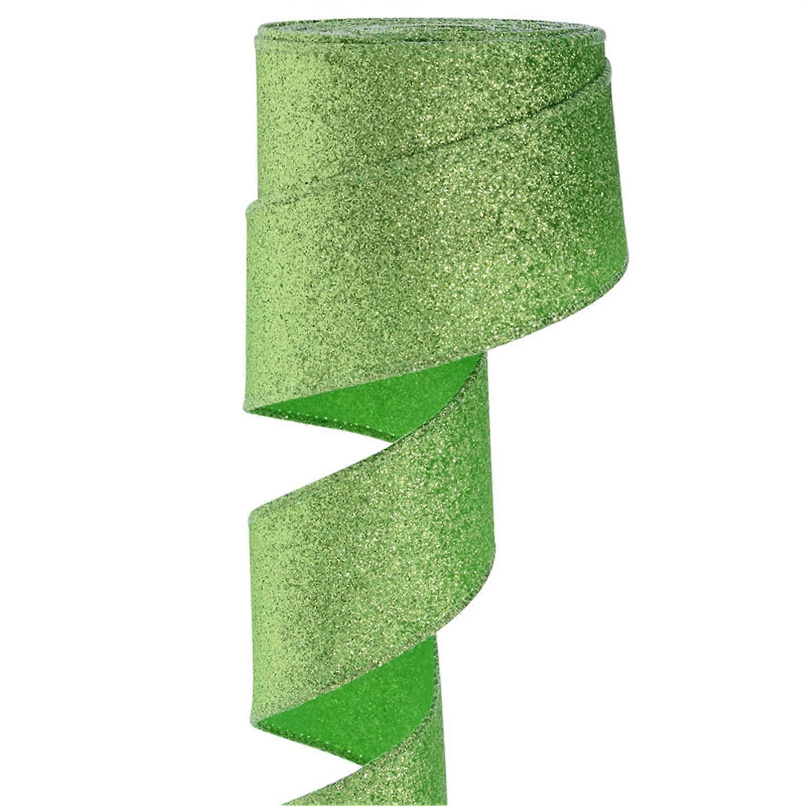 HEVIRGO 6cm Christmas Ribbon Glitter Green - Tear-resistant, Anti-fade, Multi-colors, High Gloss, compatible with Xmas Tree, Gift Packing, Party