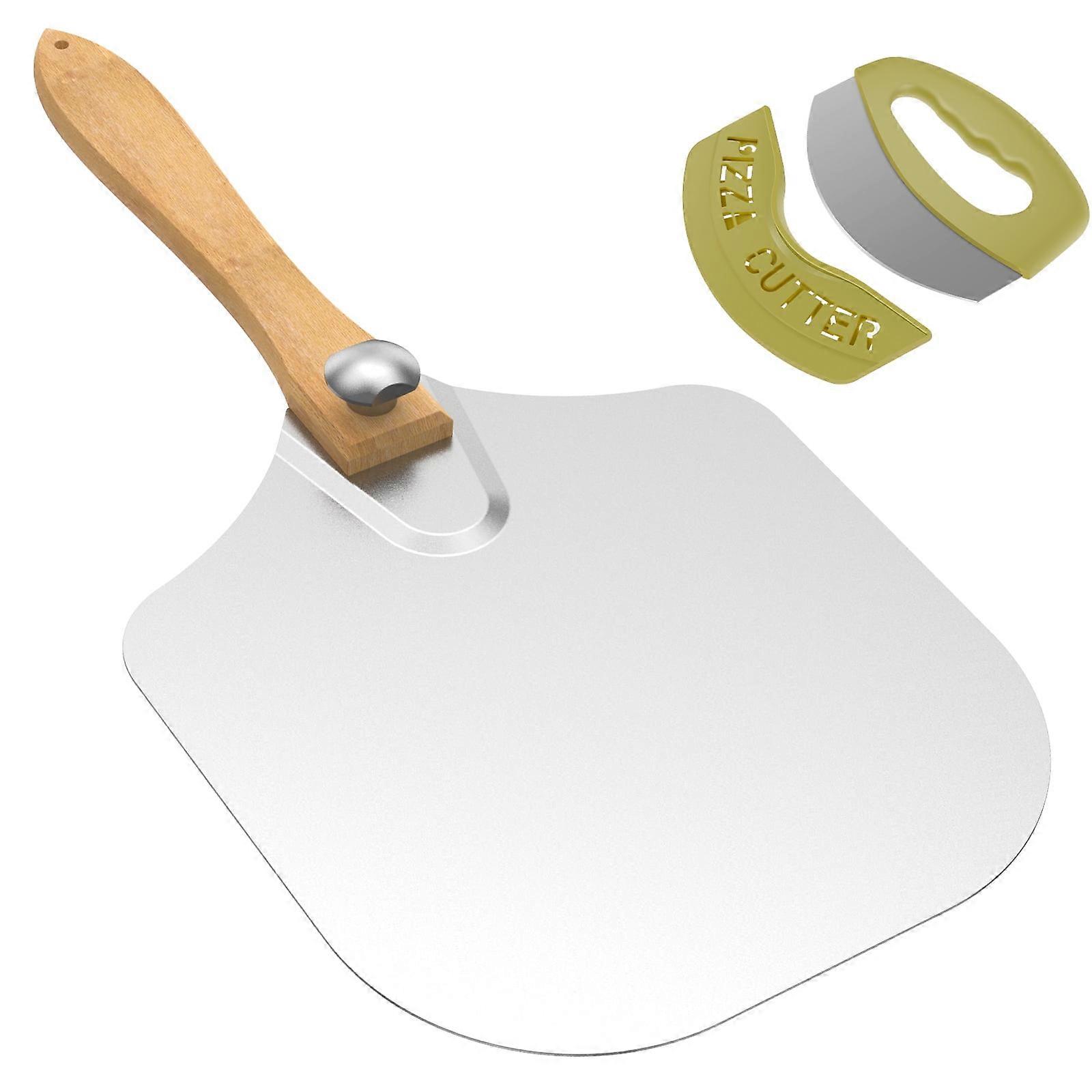 Grusce Pizza Peel Pack - Aluminum Alloy Pizza Paddle with Wood Handle, Compatible with Oven, Easy to Store for Pastry, Dough, Bread