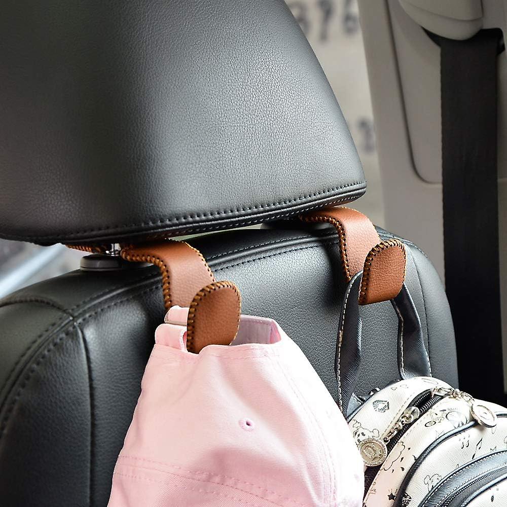 Car Hooks Universal Car Vehicle Back Seat Headrest Hanger Holder Hook Microfiber Leather & Stainless Steel for Bag Cloth Drink Grocery (Brown)