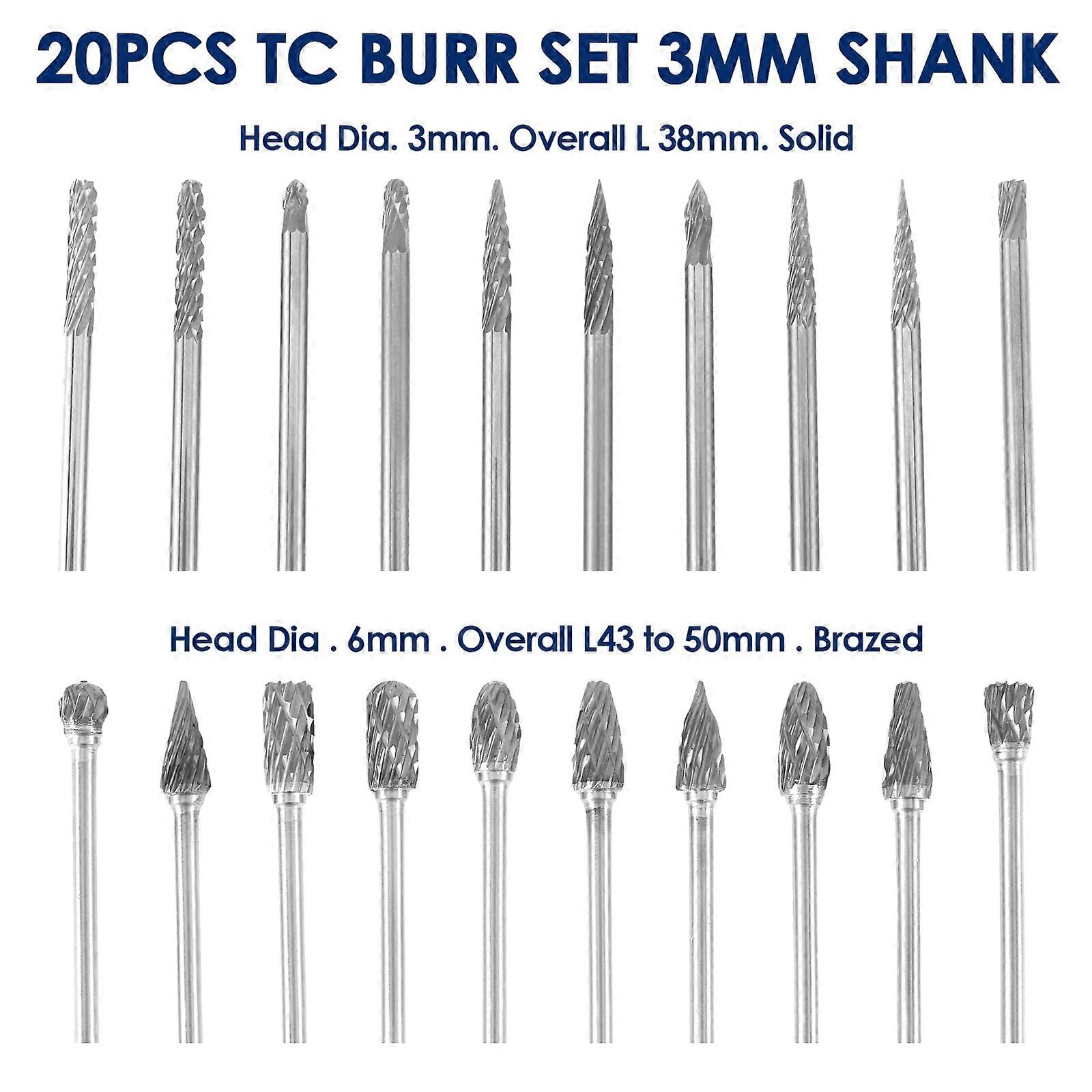 Grusce 10/20Pcs Carbide Burr Set, Tungsten Steel Double Cut Rotary File Bits for Wood, Metal, Engraving, Deburring - Compatible with Die Grinders