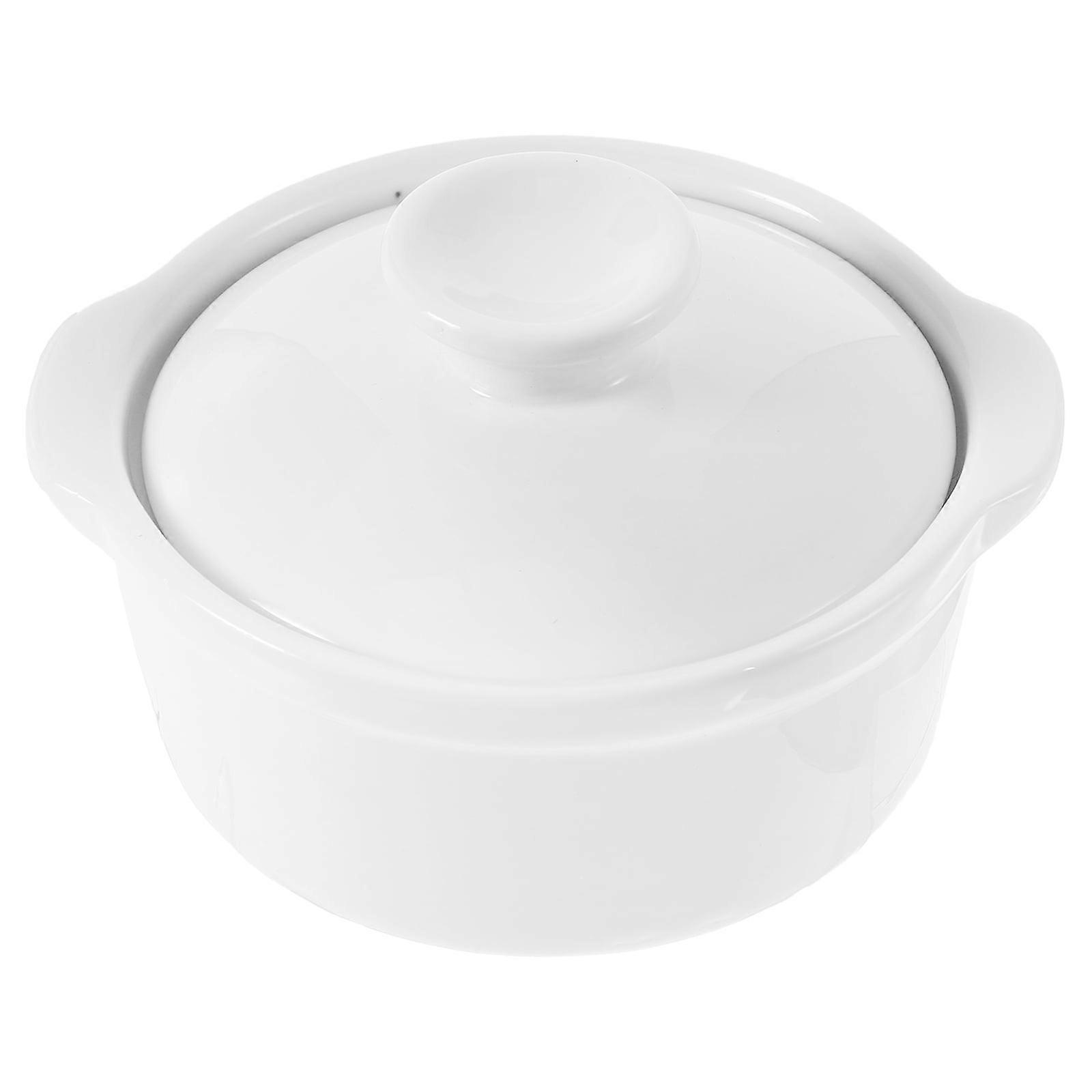 Pasta Appetizer Bowls Soup with Lids Double-ear Dessert Stew Bird's Nest Steamed Egg (4-inch Bowl) White Ceramics