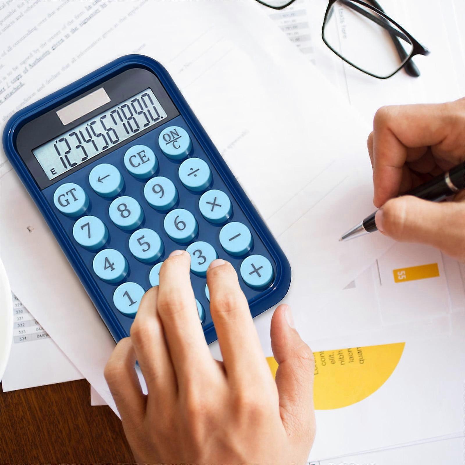 Fnyoxu 10-Digit Desk Calculator with Large Keys & Angled Display, Solar/Battery Powered, Blue - Compatible with Office and Home