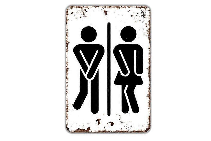 Funny Man Woman With Crossed Legs Sign Gender Neutral Bathroom Metal Wall Art Size: 8 x 12 Inch