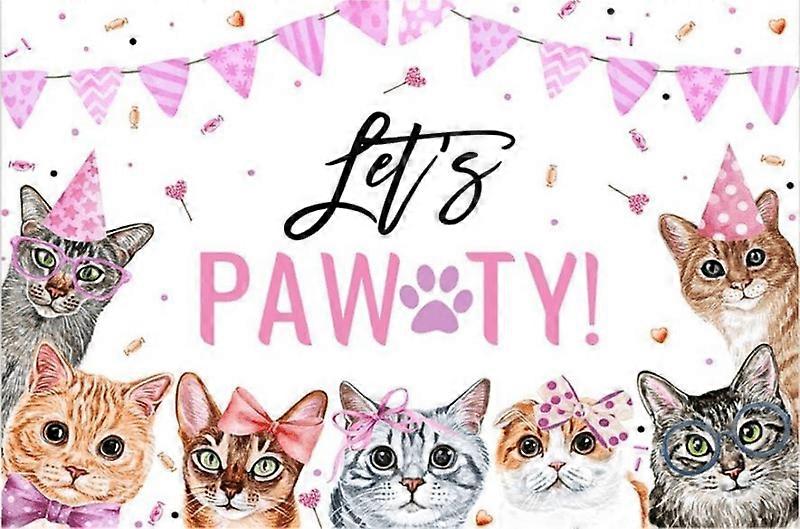 CUSTOM Cute Cats Happy Birthday Themed Backdrops Let's Paw-ty Pet Cats Pink Girl Banner