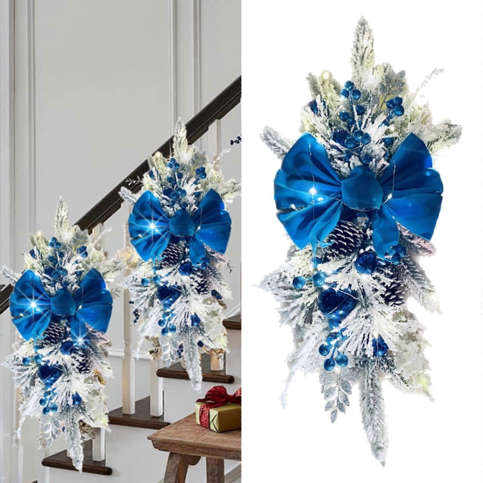 Begine Garland Decoration Clearance,Christmas Staircase Decoration Luminous Garland Blue C 45X20Cm,1X Wreath