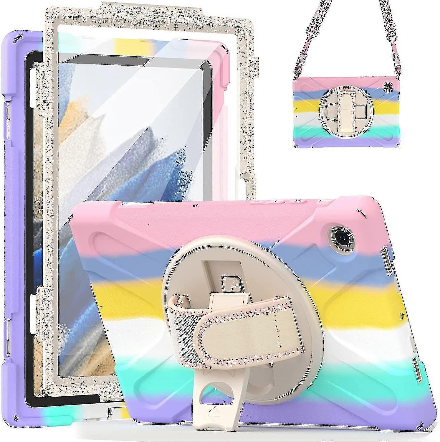 Only Fit for Samsung Tab A8 2022 Compatible with Samsung Galaxy Tab A8 10.5 Inch 2022(Model: SM-X200/X205/X207), NOT work for Galaxy Tab A7 tablet or any other devices. Please confirm the model number before purchase.Full Protection with Screen Protector for KidsDesign with a soft kidsproof shock resistant outer silicone shell, an inner hard polycarbonate shell with built-in screen protector, this protective Galaxy Tab A8 10.5 case provides max protection to your tablet.360 Rotating KickstandRotatable stand features multi-angle viewing, you can set up your iPad in the perfect position to facilitate easy reading, browsing, or video watching in both portrait and landscape positions. Soft rotating handle strap gives you a fine grip on your A8 tablet for safe transport and use while youre on the go.Removable Shoulder StrapThe shoulder strap is an unique design for kids Boys Girls Women walking/travelling, architecture designers, real estate agents, construction workers as well as outdoor labor. It also can be tied in the car headrest so that kids watch video.Heavy Duty Rugged ProtectionThe case has an elegant design made from a unique material and texture. It's heavy-duty enough to withstand a six-foot drop. Note: Due to the light and screen setting difference, the item's color may be slightly different from the pictures. Please allow slight dimension difference due to different manual measurement.