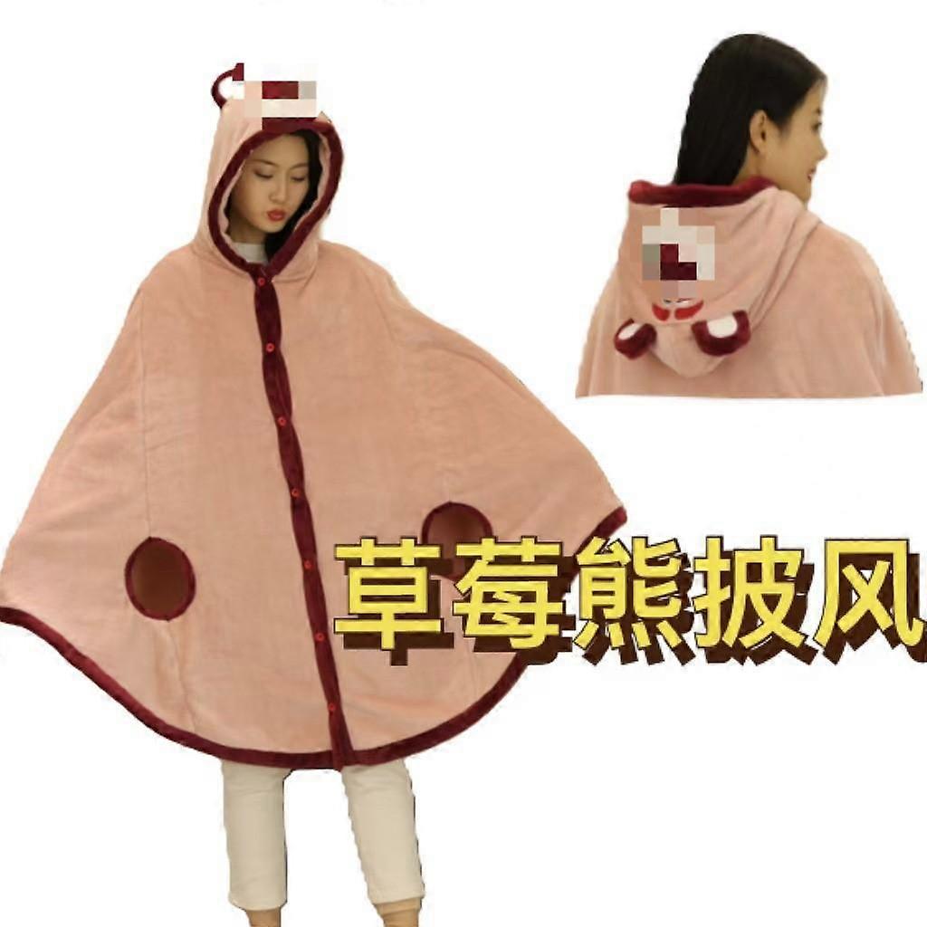 Strawberry Bear Cute Hooded Cape Cartoon Animal One-Piece Pajamas Student Shawl Nap Blanket