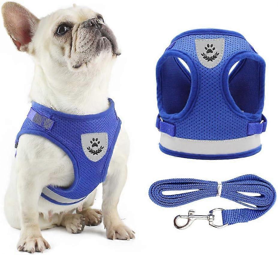 Mesh Pet Harness for Outdoor Jogging and Walking Anti-Escape Dog Harness with Reflective Hook and Loop Buckle for Small Medium Pets (Large, Blue)