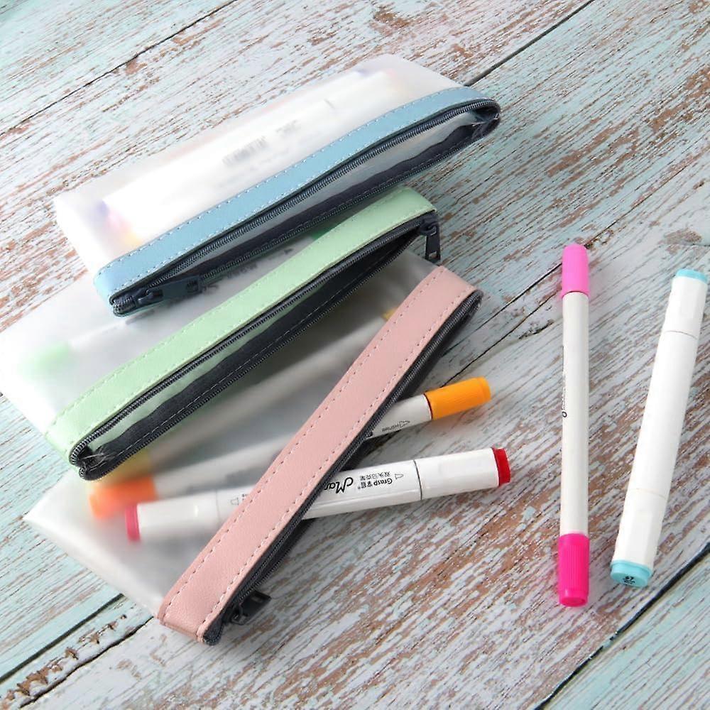 Transparent exam pencil case, pencil case with zipper - stationery storage box, pencil case, travel cosmetic bag (sakura pink)