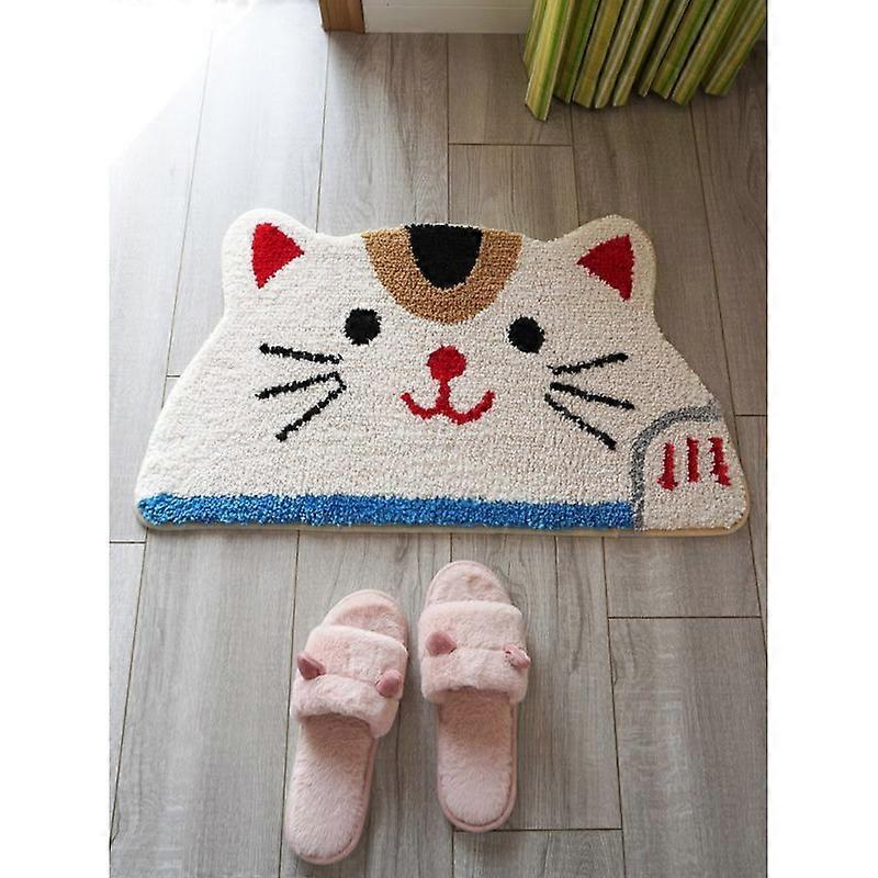 Cute cartoon cat-themed decorative floor mat for home use in bedrooms, made of faux cashmere, durable, dustproof, and soft.