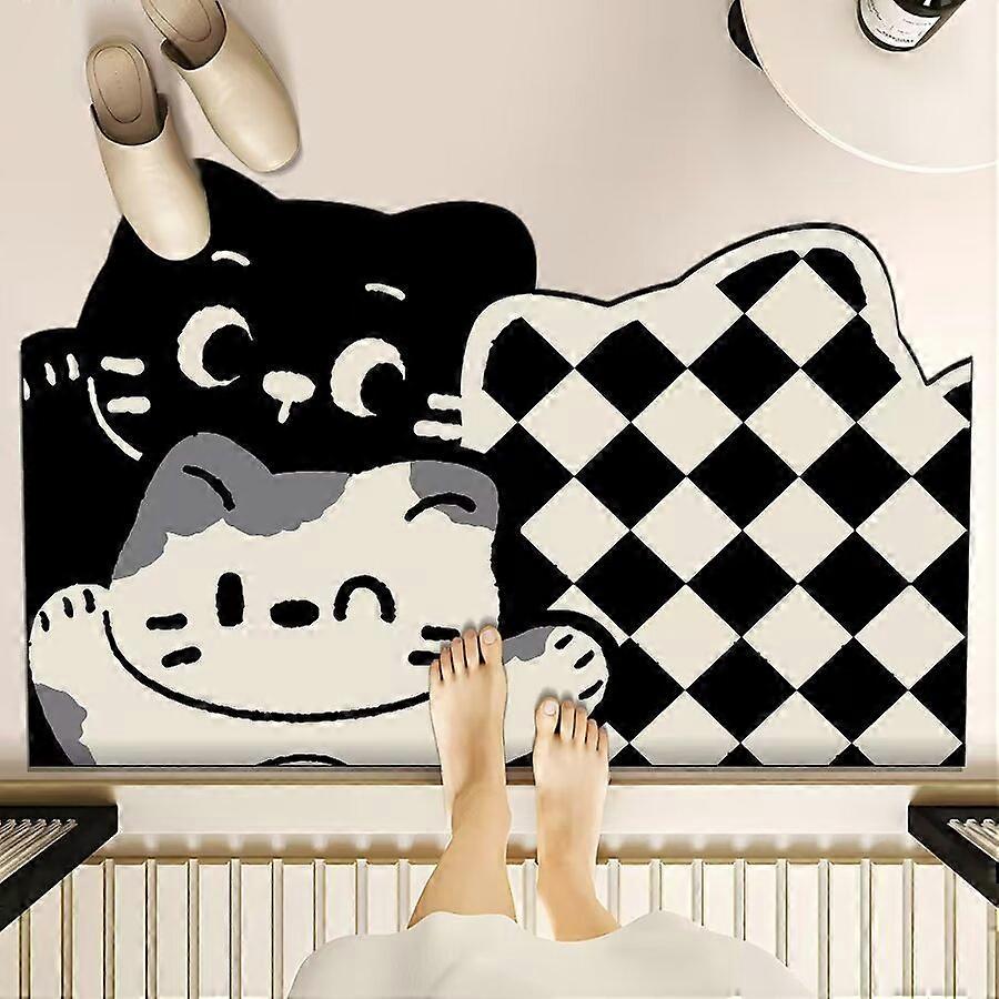 Checkered Cat Diatom Mud Style Floor Mat Cartoon Absorbent Quick-Drying Bathroom Mat Home Toilet Door Mat