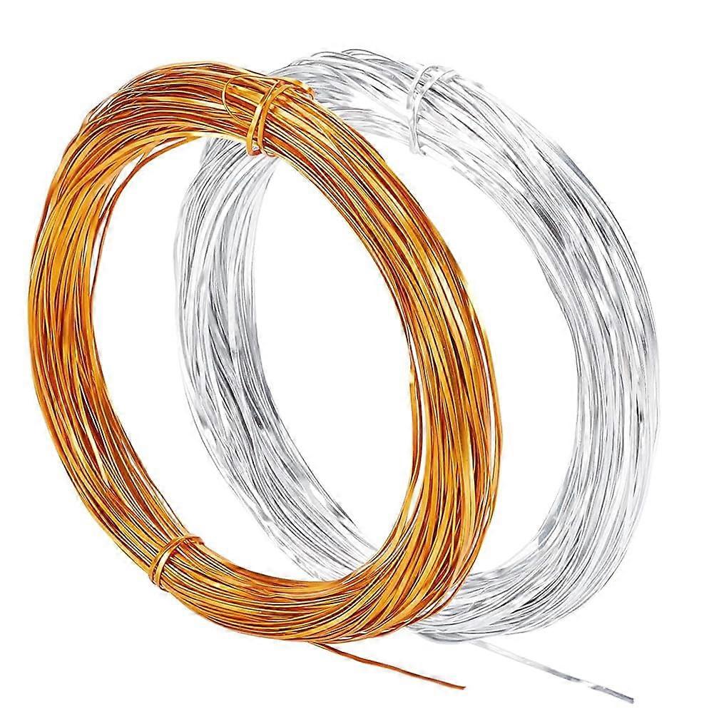 Flat Aluminium Wire 40mm 18ft/1m Gold Silver Cloisonné Enamel Wire 0.4mm Thickness for DIY Jewellery Making (65.6ft/Roll) 2 Rolls)