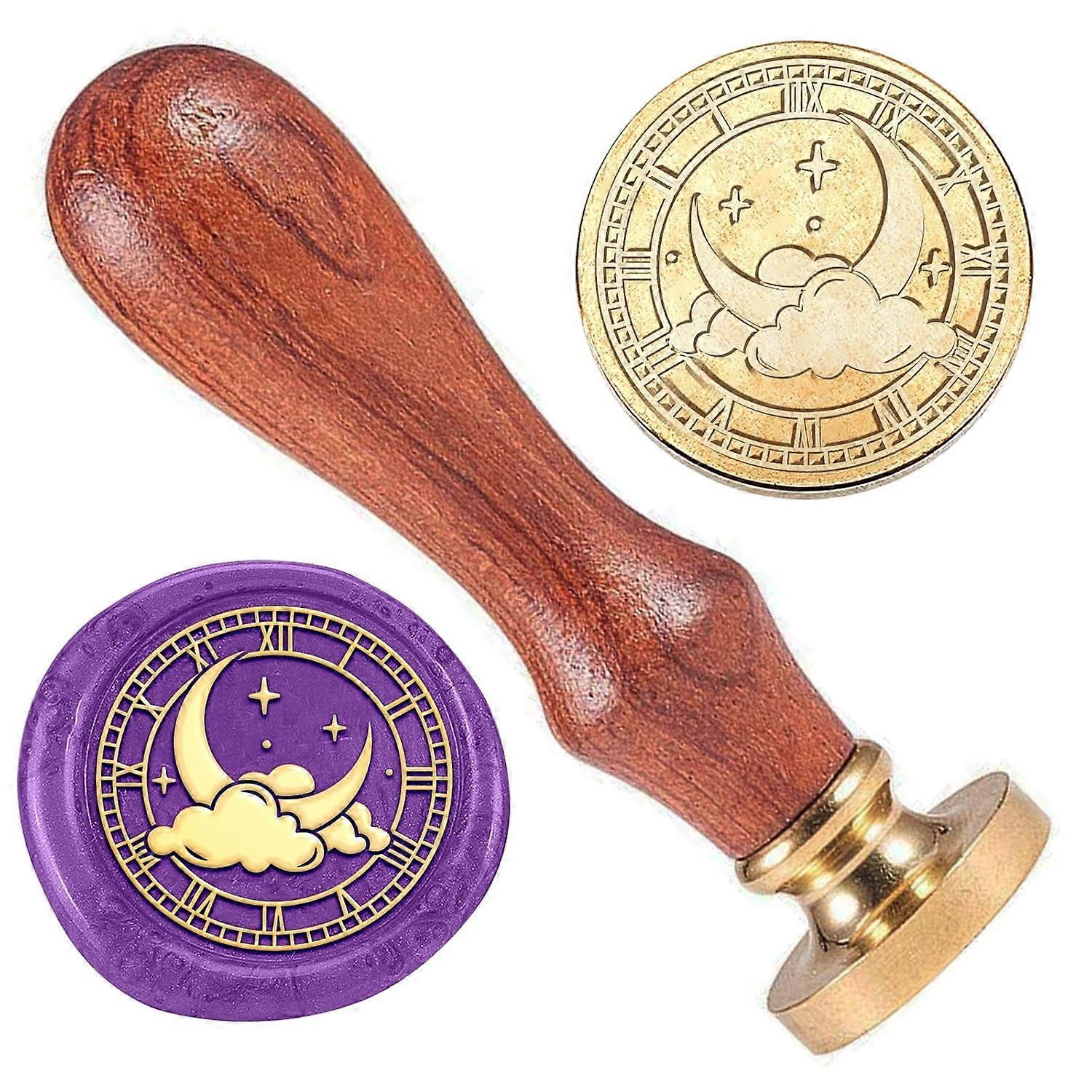 Moon Cloud Wax Stamp Set, 1" Removable Brass Head & Wood Handle, Vintage Clock Design, for Invitations, Gifts, Envelopes, Wine Decoration, DIY