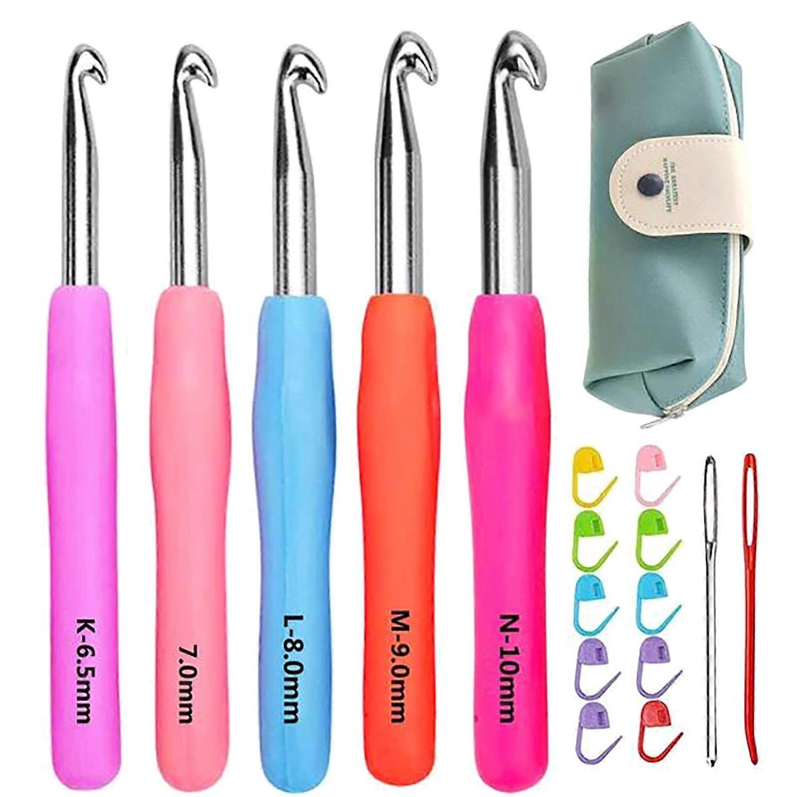Yakbaofuo Crochet Hook Set Ergonomic Large Crochet Hooks Yarn Needles Soft Handles Aluminum Crochet Hook for Beginners Adults DIY Knitting