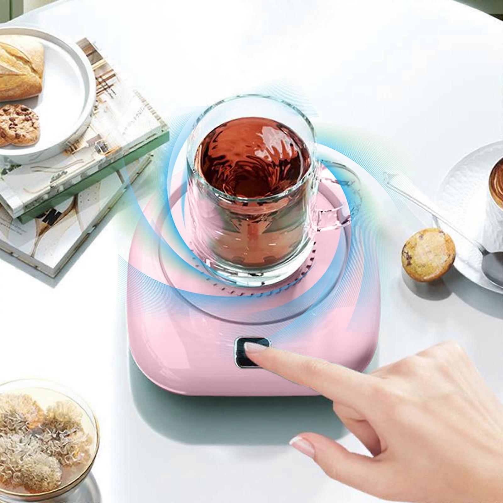 Fnyoxu USB Auto Stirring Saucer for Coffee, Milk Drinks - Quick Chill, Compatible with Various Cups - Home & Office Use (Pink)