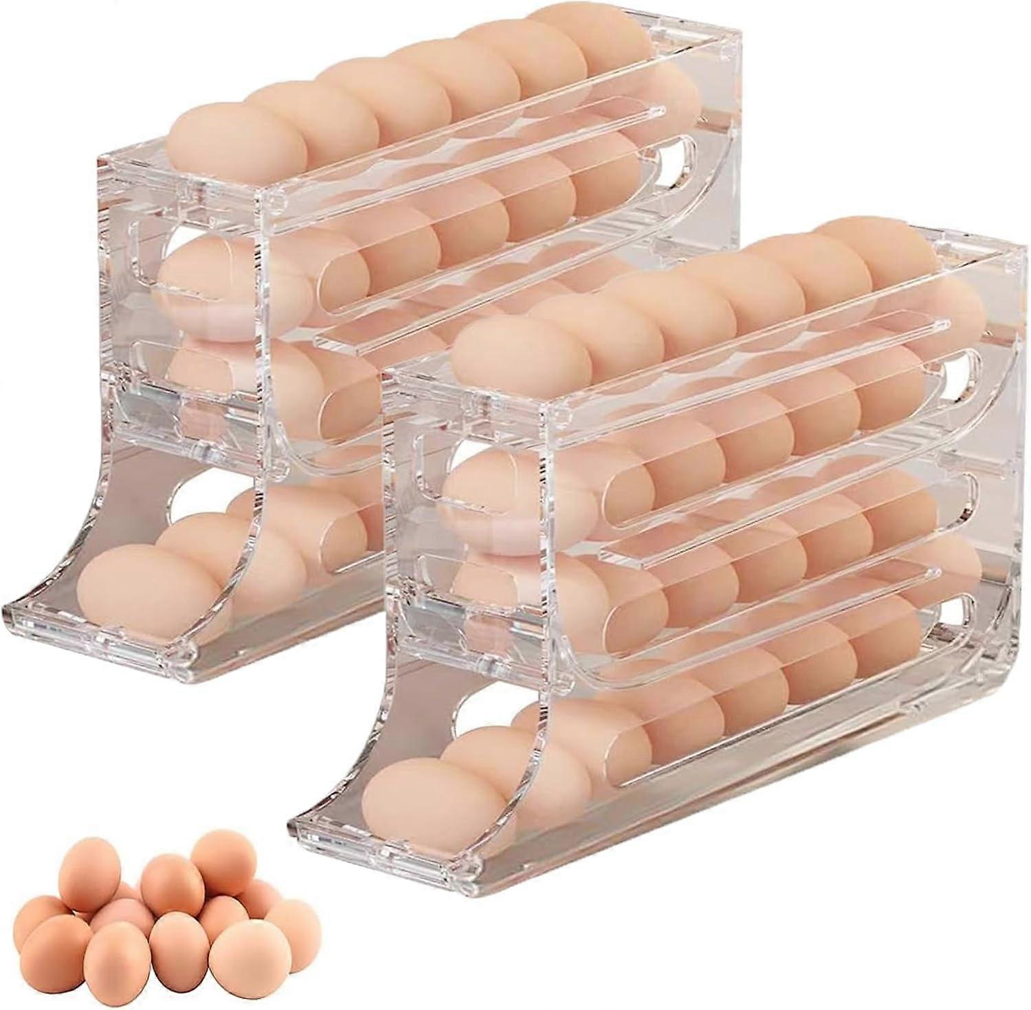 4-Tier Egg Holder for Fridge, Automatic Scrolling Rack, 30-Egg Capacity Organizer, Space-Saving Dispenser, Transparent