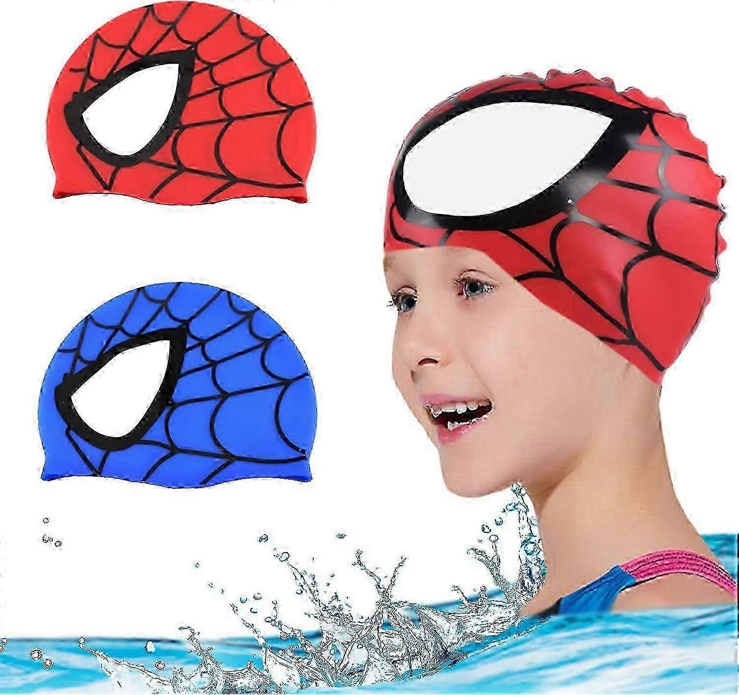 Swimming Cap 2 Set, Unisex Waterproof Wings Water Sports Hat Pattern Long Hair Hat for Boys Girls Ki p