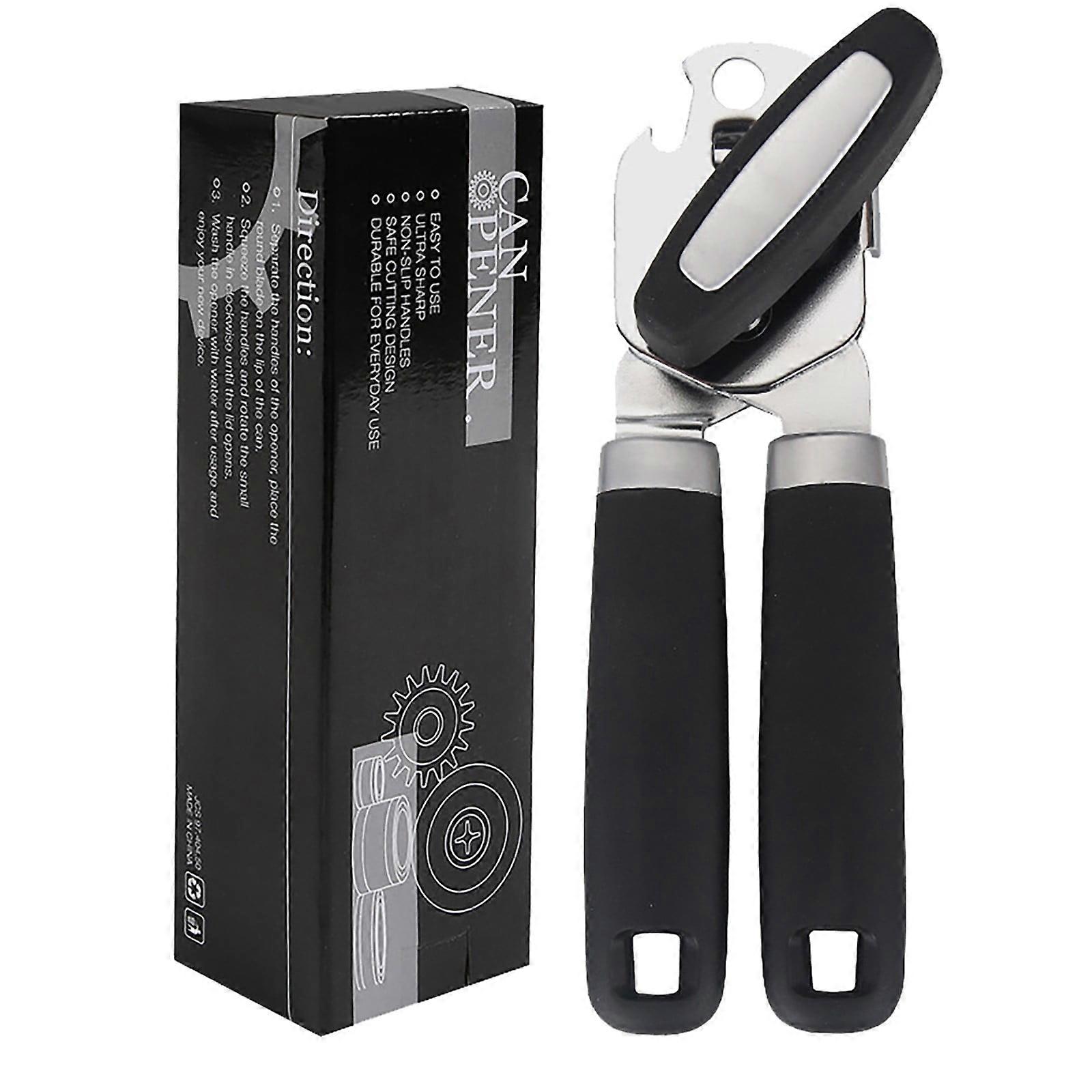 Poaug Can Opener - Heavy Duty Stainless Steel, Soft Handle, Smooth Edge, Manual Handheld with Easy Turn Knob, Black