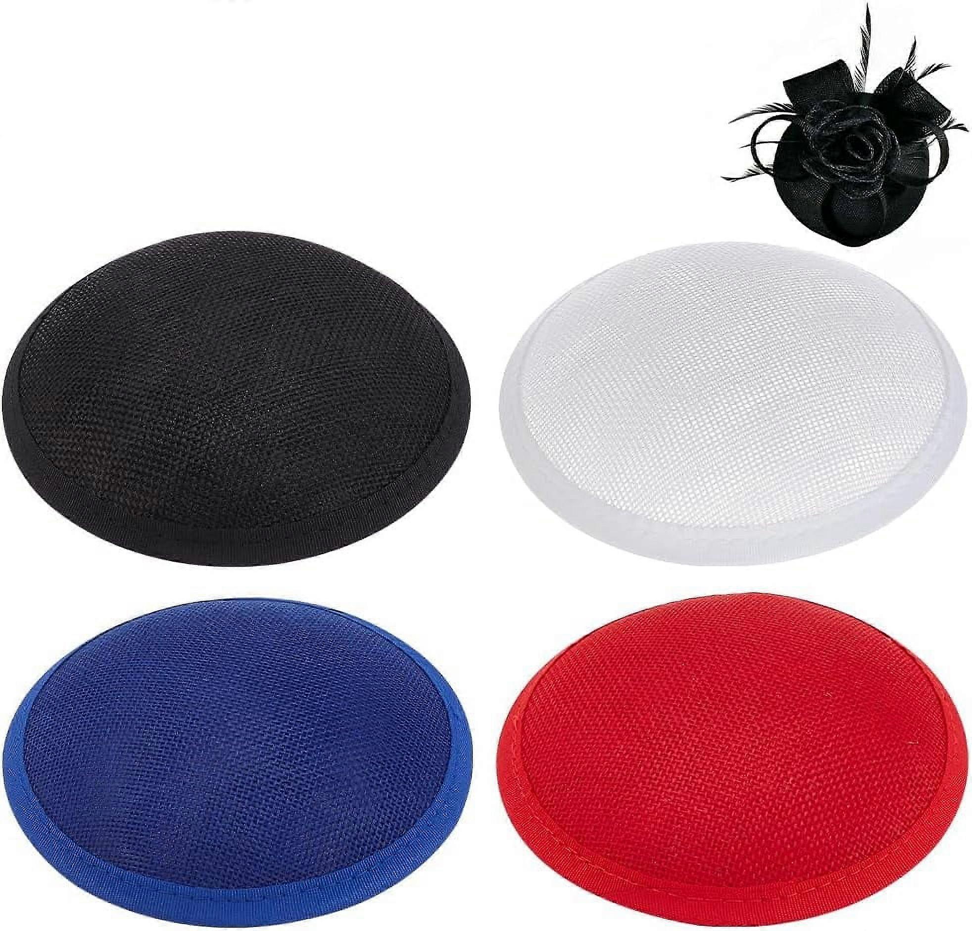 4Pcs 4 Colors Vintage Round Fascinator Hat Base Imitation Linen Sinamay Hat Base 5 Inch Millinery Base for Party Hat Craft DIY Supplise DIY Package Included: You will receive firebrick, dark blue, white and black cap base, 1 piece/colour, 12.8~12.9 cm/5 inch in diameter, about 0.78 inch/20 mm thick, classic colour and size, suitable for most hair accessories cap making. Premium Quality: The bottom of this hat is made of high quality mesh faux linen material, comfortable and breathable, double-layer side seam treatment, not easy to deform. Use our reliable hat accessories to make a gorgeous hat. Easy to Use: Round bottom of the hat, raised top, perfect arc, can be well fixed on the head, perfect for making headwear and cocktail hats. Hat DIY Crafts: On top of the hat base, you can add your favourite elements such as lace, feathers, gauze, pearls and other decorations to create personalised hair accessories. Finally secure it on your head with a hair comb, elastic band or headband (not included). Wide Application: This round hat stand can be used to make hair accessories, headbands, costume accessories and more. Perfect for holiday trips, honeymoon trips, garden parties, cocktail parties, tea parties, weddings.