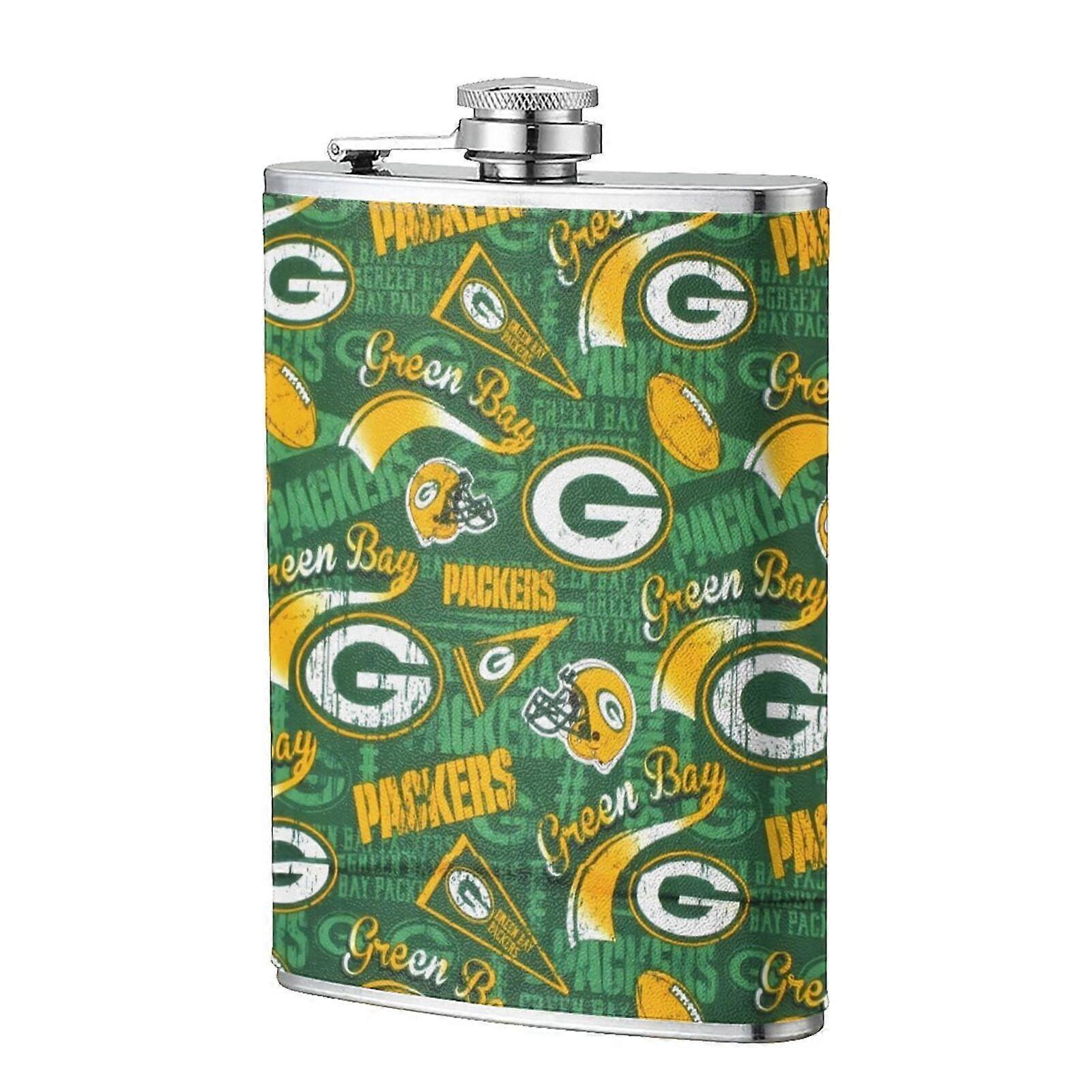 Packers Flagon Hip Flask for Men, 8oz Food-grade Stainless Steel Leather Pocket Flask, Compatible with Outdoor Sports, Camping, Ultralight Portable