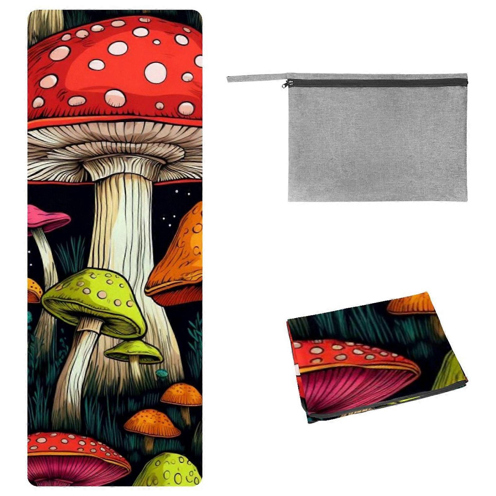 Mushroom Gym Towel with Storage Bag, 72.8"x26.8", Suitable for Yoga, Pilates, Fitness, etc. - Yoga Blanket, Yoga Mat Towel Included