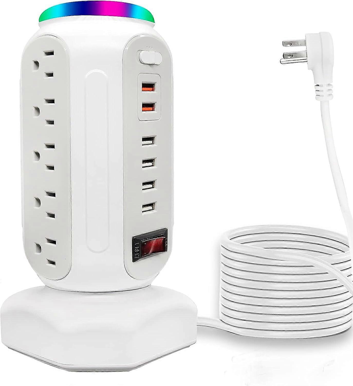 Power Strip Tower 15 Outlets 6 USB Ports, Surge Protector with Colorful Light & USB Fast Charger,Desktop Charging