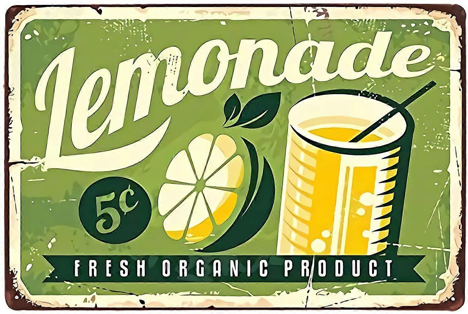 Vintage Tin Poster - Delicious Fresh Orange & Lemonade Decor, 8x12 inch Retro Metal Sign for Home, Kitchen, Bar, Diner Compatible with Wall Mounting
