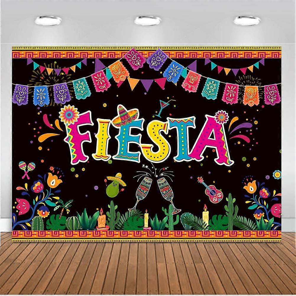 3.9 x 5.9Ft Mexican Fiesta Theme Backdrop compatible with Cinco de Mayo Party, Carnival Colorful Flags & Floral Banner for Birthday Decor
