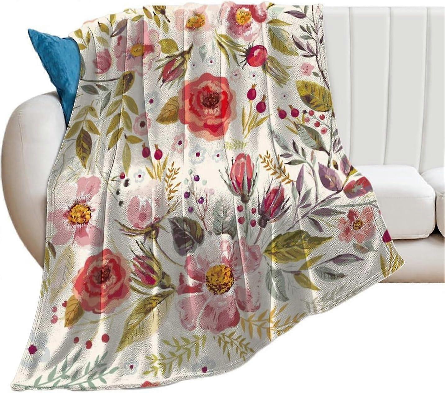 Lightweight Travel Blanket, Flannel Sofa Throw for All Seasons - Compatible with Floral Chic, Roses, Dots, Leaves, Spring Theme