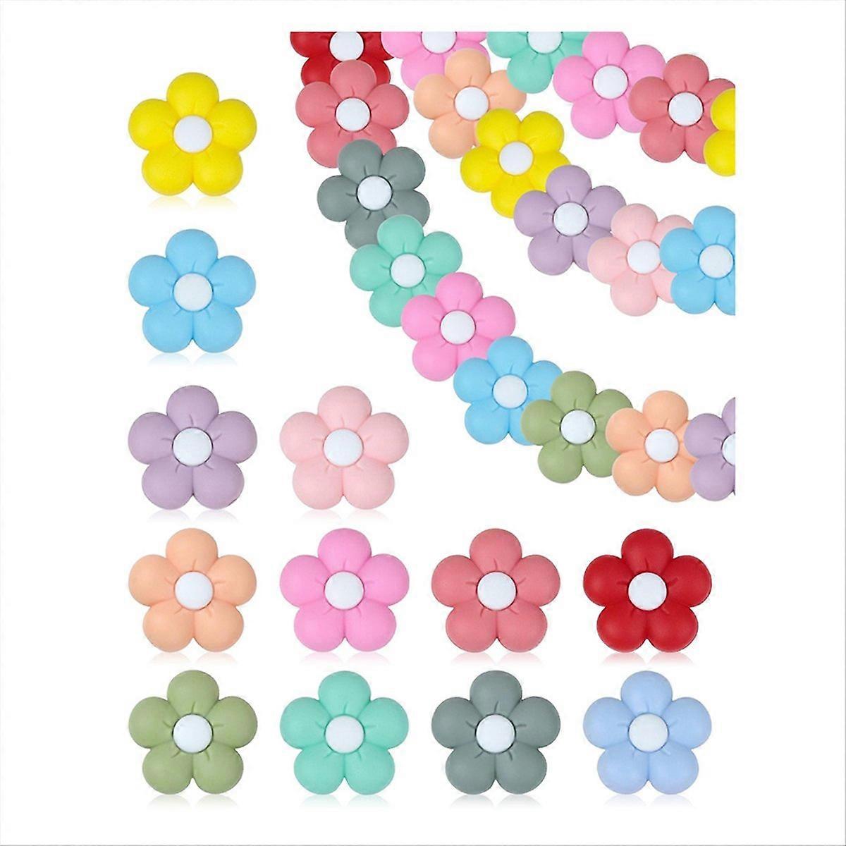 24PCS Silicone Beads,Flower and Cute Charms for DIY Keychains, Pens, Bracelets, Necklaces,Lanyards,a