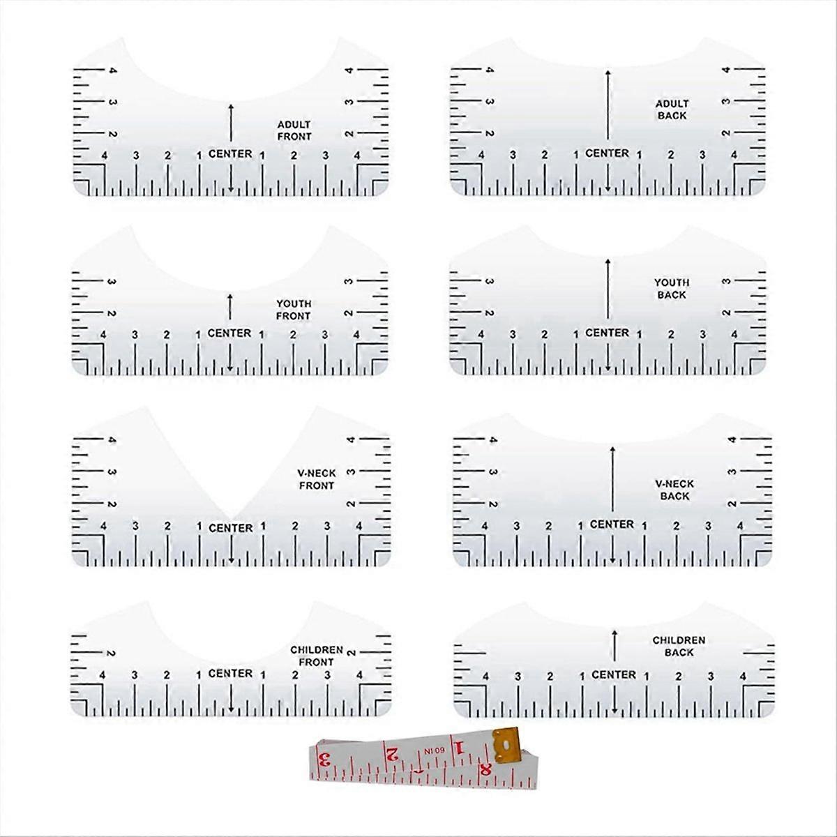 9pcs Tshirt Ruler Guide to Center Vinyl, parent V-Neck/Round PVC Ruler for Alignment, Heat Pres
