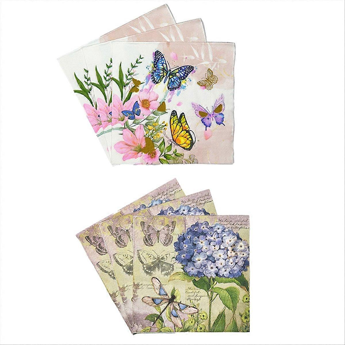 6packs 20Pcs/Pack 33x33cm Flower Butterfly Printed Paper Table Dinner Napkin Tissues Wedd