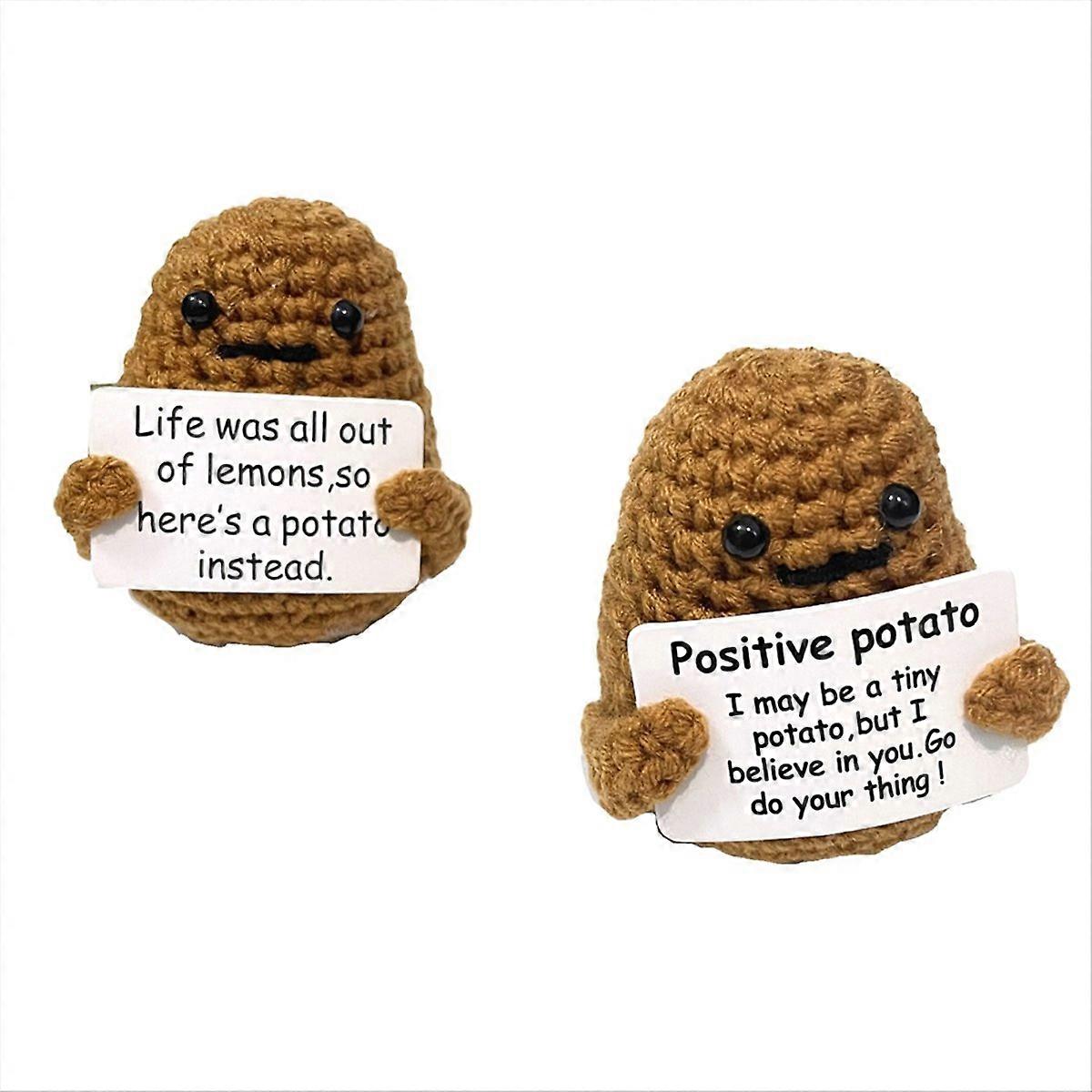 2Pcs Funny Positive Potato Toy, Cute Crochet Potato Doll with Positive Card