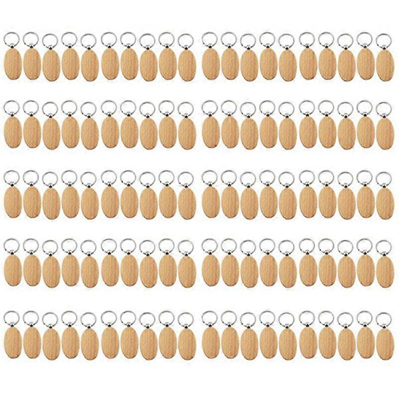 100Pcs Blank Oval Ellipse Wooden Key Chain DIY Promotion Keychain Pendant Keyring Tags Promotional G