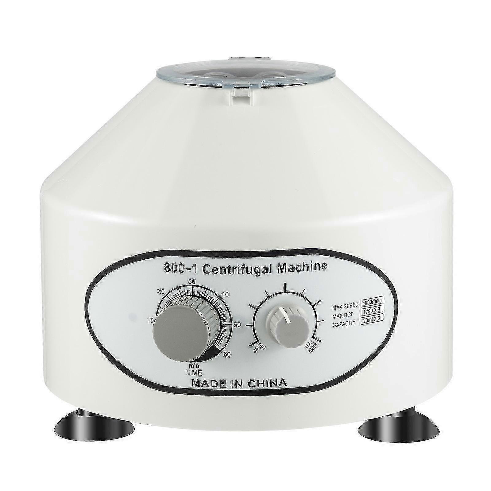 Laboratory Electric Centrifuge Speed 0-4000rpm EU Standard Details Transparent Dust Cover: It can facilitate real-time observation of machine operation and prevent dust from entering, extending its service life. Stable Suction Feet: There are three suction feet at the bottom, making the machine stand more stable and ensuring the safety of the experimental process. Top Hinge: It has more balanced opening and closing force and stronger buffering capacity, making it reliable to use. Application It is widely used in blood separation, plant extraction, mineral purification, microbial separation, etc. It is suitable for use in the lab, the food industry, the chemical industry, and the agricultural science. Specification Material: ABS, Rubber Process: Drawing Process Color: White, Grey Motor Type: Carbon Brush Motor Plug: EU Standard Voltage: 220V 50Hz Power: 25W Capacity: 20ml*6 Timer Range: 0-60mins Stepless Speed Range: 0-4000rpm Centrifugal Force: Max. 1790xg Noise Level: ≤ 70dB Suitable Test Tube Size: φ1.6*φ1*10cm/φ0.6*φ0.4*4in Transparent Cover Diameter: 11cm/4.3in Product Size (D*H): 23*21cm/9.1*8.3in Package Size: 26*29.5*29cm/10.2*11.6*11.4in Net Weight: 2.45kg/5.4lbs Gross Weight: 2.95kg/6.5lbs Package Included 1* Centrifuge Machine (with Power Cord) 1* English Manual Notes 1.Please read the manual and label carefully and pay attention to the safety precautions inside. 2.Please note that this machine comes with a fixed rotor, and it is not recommended to disassemble the rotor. Note: Due to the light and screen setting difference, the item's color may be slightly different from the pictures. Please allow slight dimension difference due to different manual measurement.