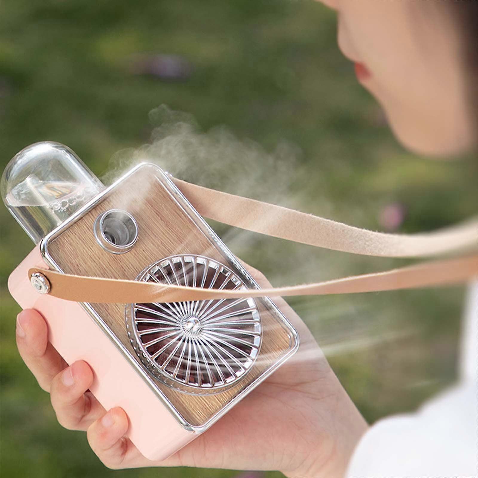 Kayannuo 3-Speed Handheld Fan with Night Light, Portable Neckband Cooler & Humidifier, Pink - Gifts for Women & Men