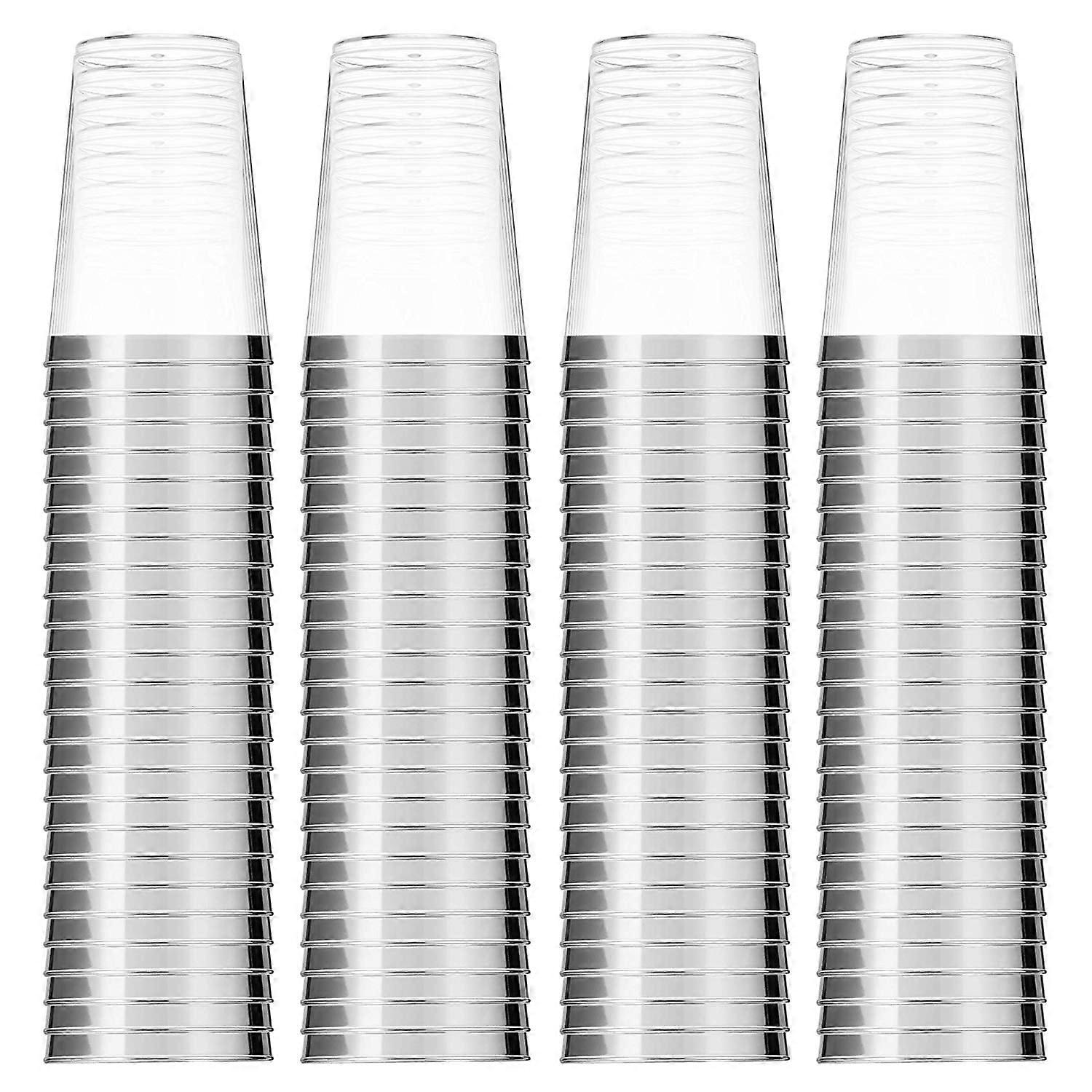 VeZee 10 oz Silver Rimmed Clear Plastic Tumblers - Durable, Disposable, Reusable, Recyclable - 50 Count