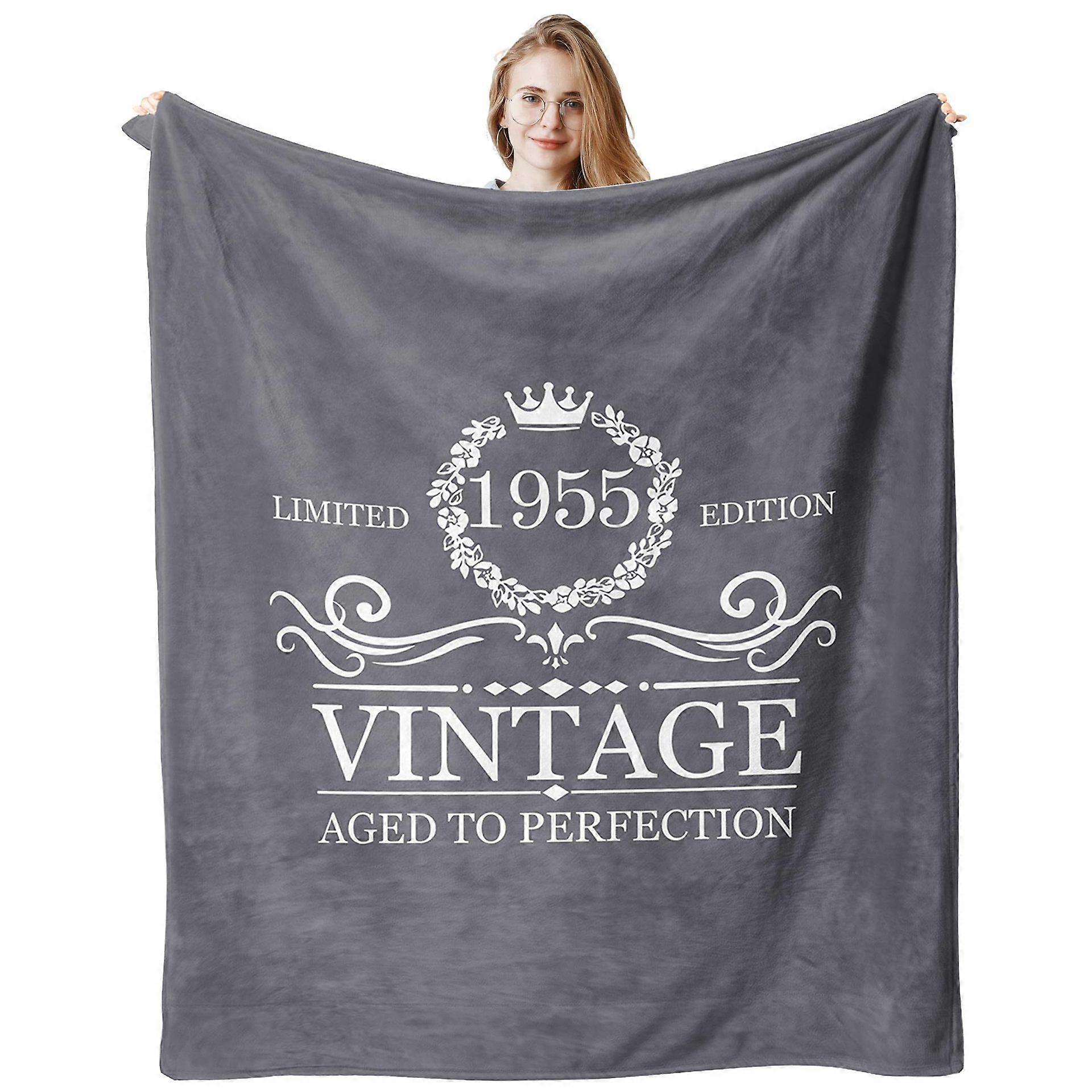 A Retro "Happy Birthday" Decorated Flannel Warm Blanket From 1965, A 60Th Birthday Blanket Gift For Mom-240x220cm