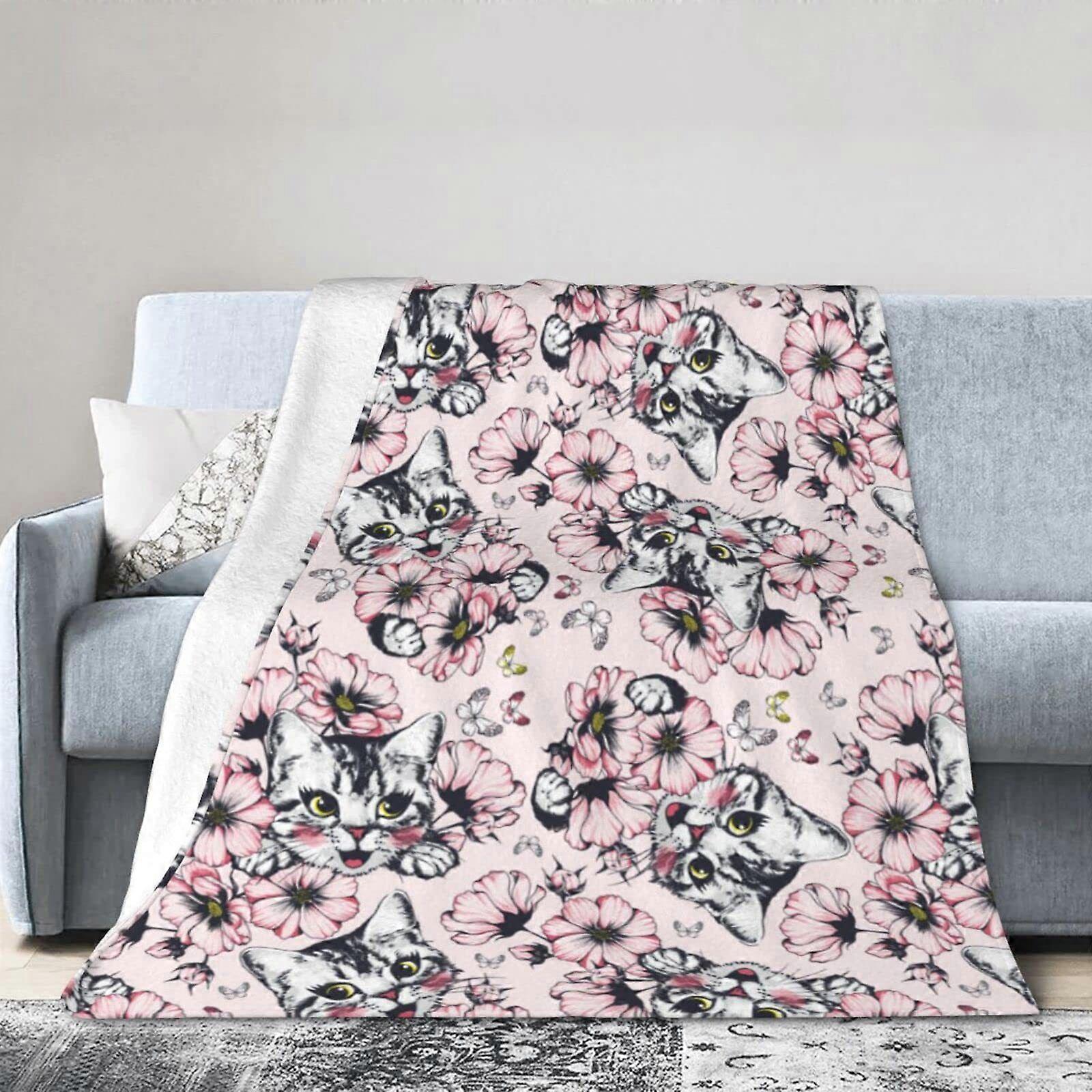 Pink Face Gray Cat Blanket Printed Plush Fluffy Flannel Blanket Soft And Bed Throw-70x100cm