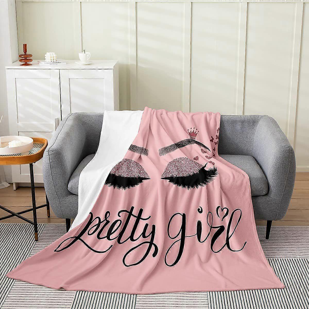 Eyelash Blanket Fashion Pink Glitter Eyelash Blanket Diamond Aesthetic Flannel Blanket Bed Throw-75x100cm