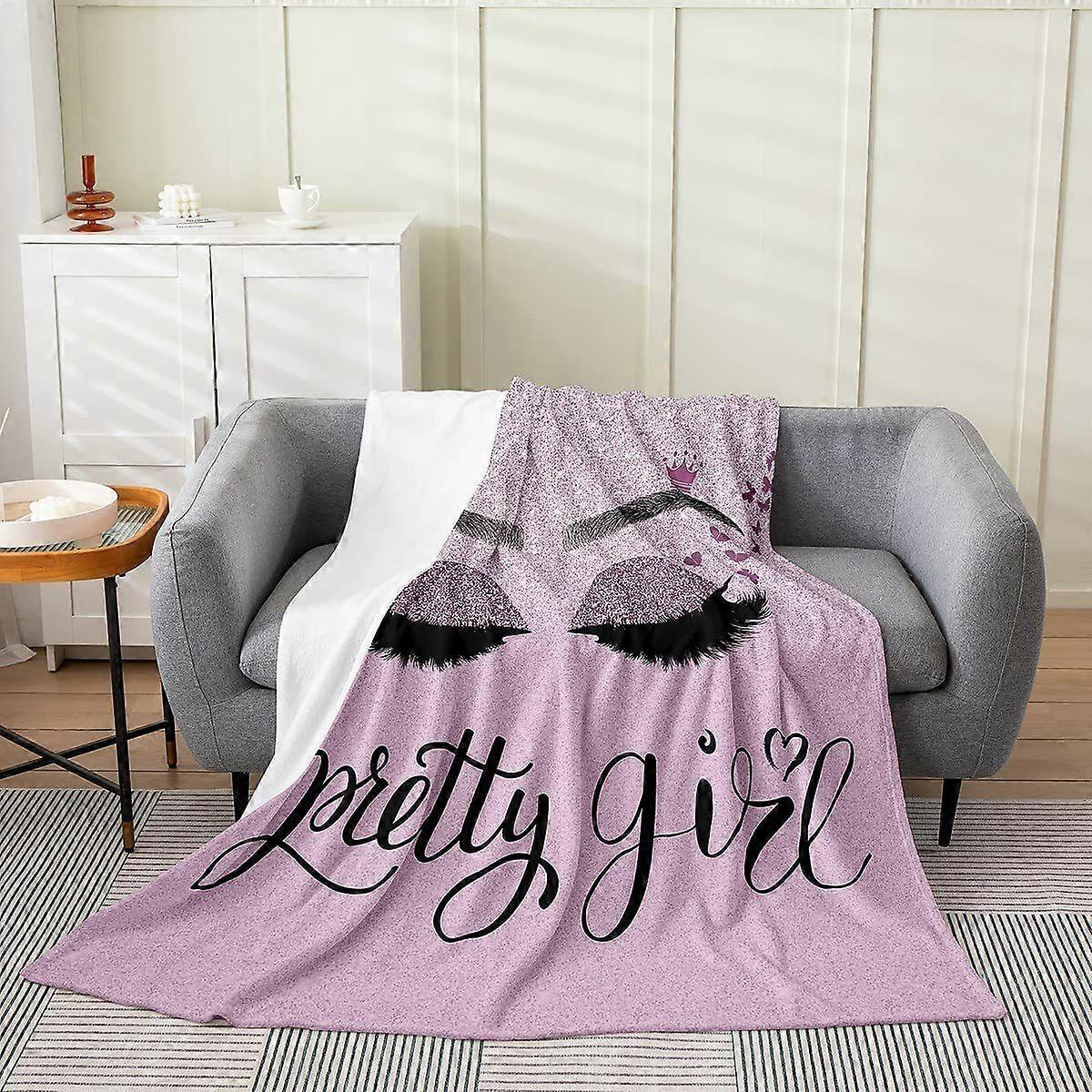 Eyelash Blanket Fashion Pink Glitter Eyelash Blanket Diamond Aesthetic Flannel Blanket Bed Throw-173x218cm