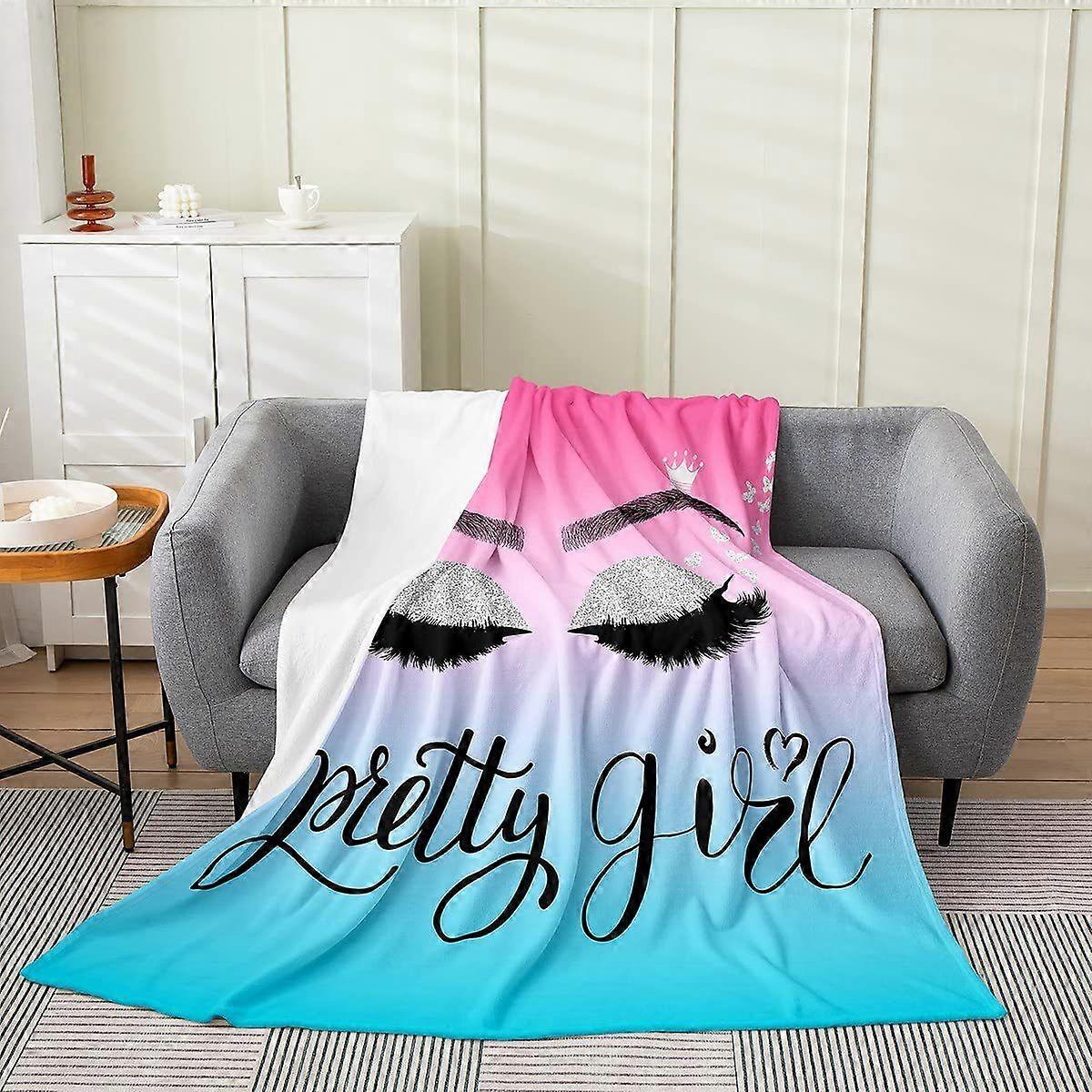 Eyelash Blanket Fashion Pink Glitter Eyelash Blanket Diamond Aesthetic Flannel Blanket Bed Throw-130x150cm