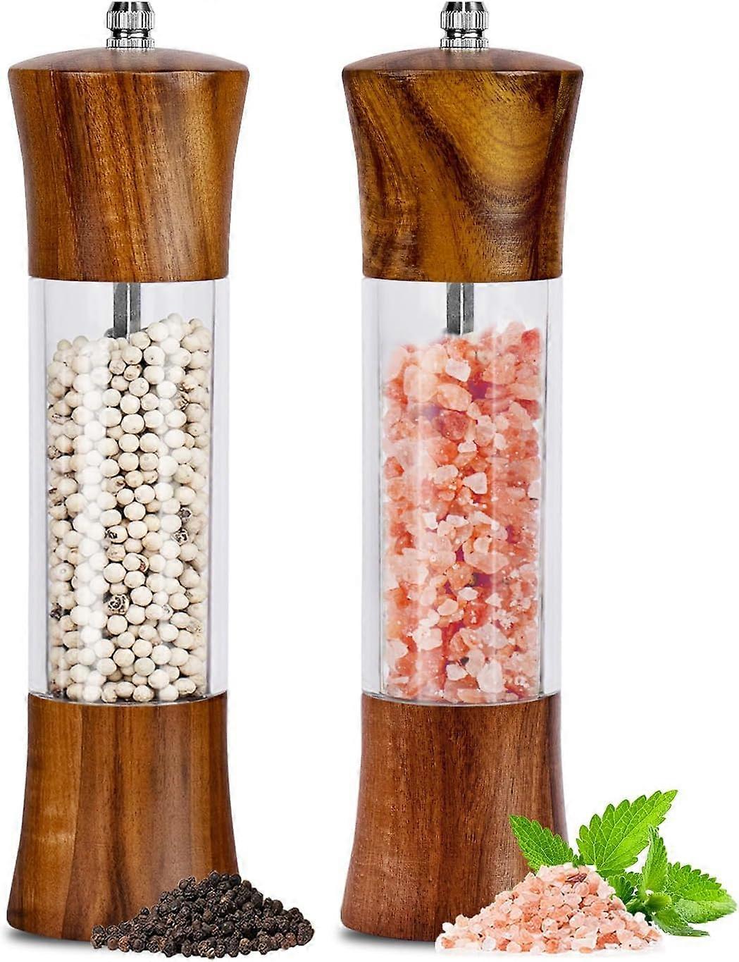 Acacia Wood Premium Acrylic Salt Grinder and Pepper Grinder Set 8 Inches Salt and Pepper Mill Set, Manual Salt and Pepper Mills- Wooden Shakers with