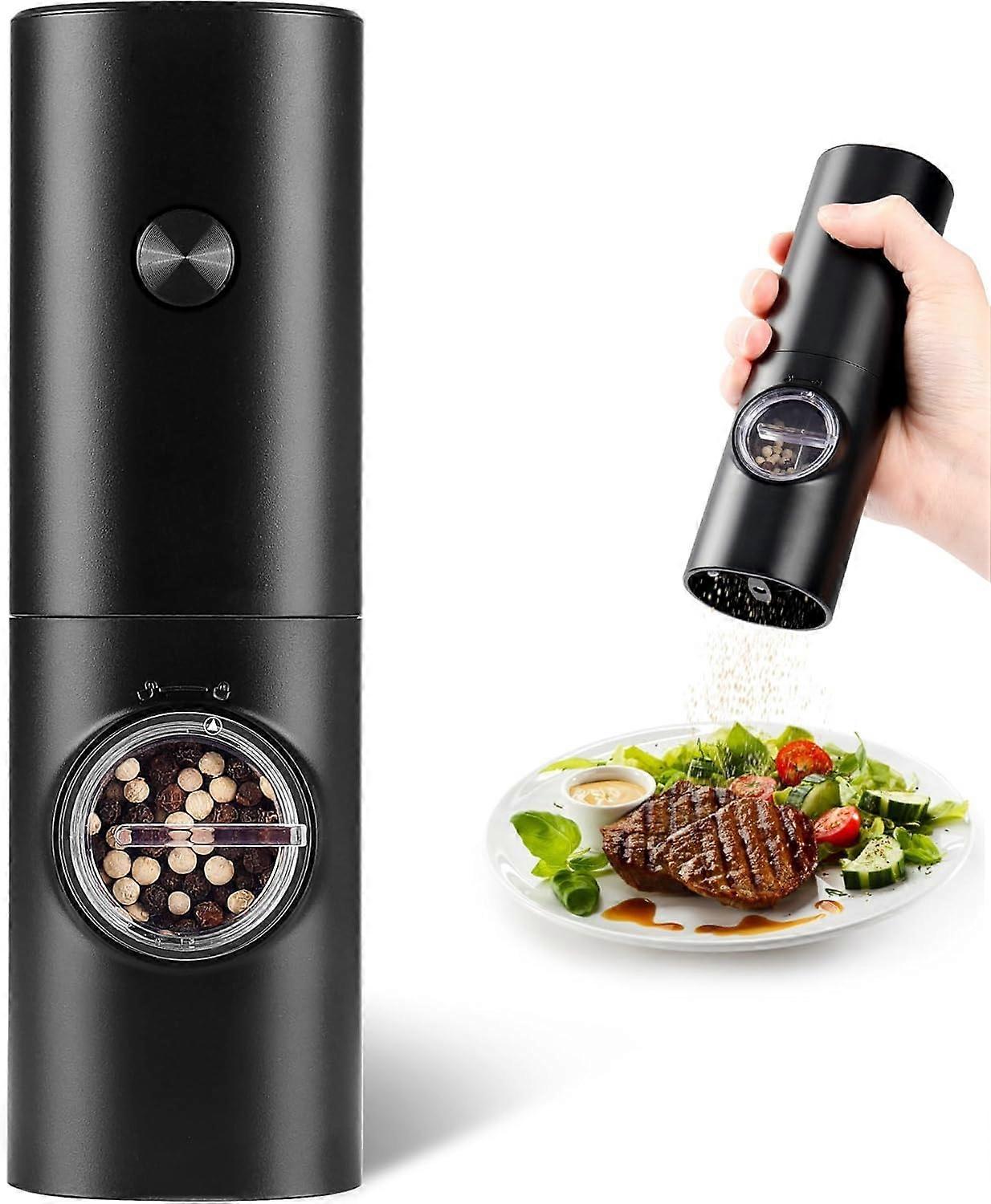 Electric Pepper Grinder or Salt Mill, Battery Powered Automatic Pepper Mill, Ceramic Grinder with Adjustable Coarseness, LED Light, One Hand Operatio