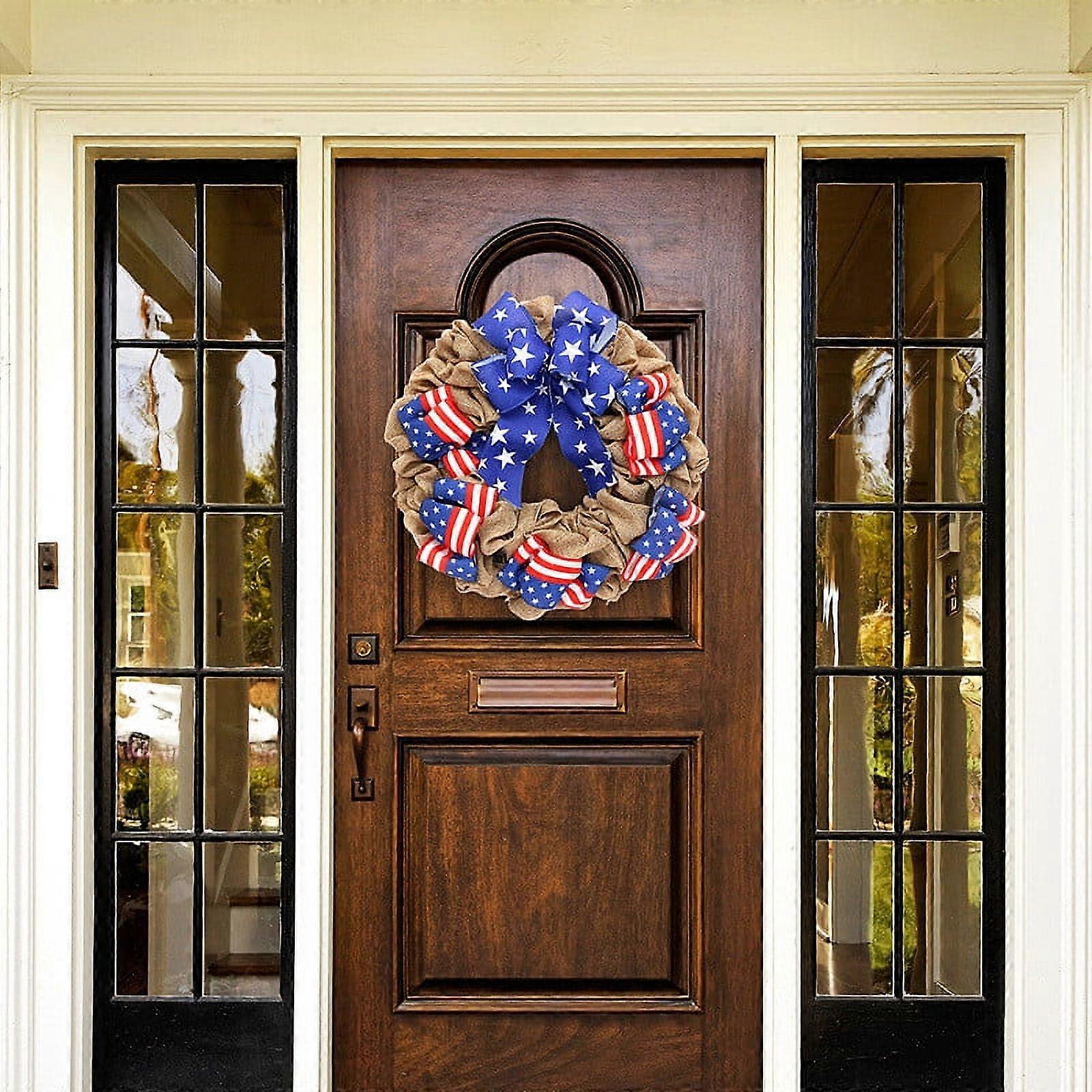 maxiaoxia 11.8-Inch Rustic Red White Blue Patriotic Fabric Wreath with Metal Star Bow, Indoor Outdoor 4th of July, Independence Day, Memorial Day